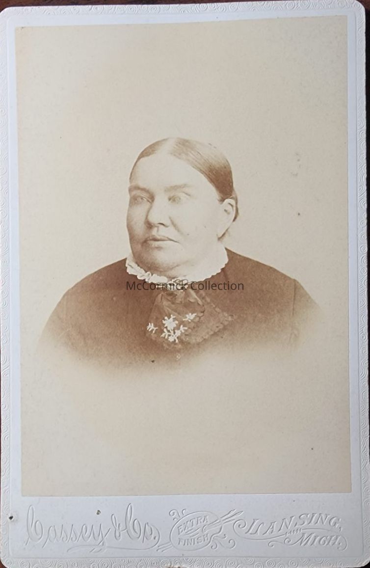 Cabinet card photograph of an unidentified woman by Lansing photographer Cassey and Co.