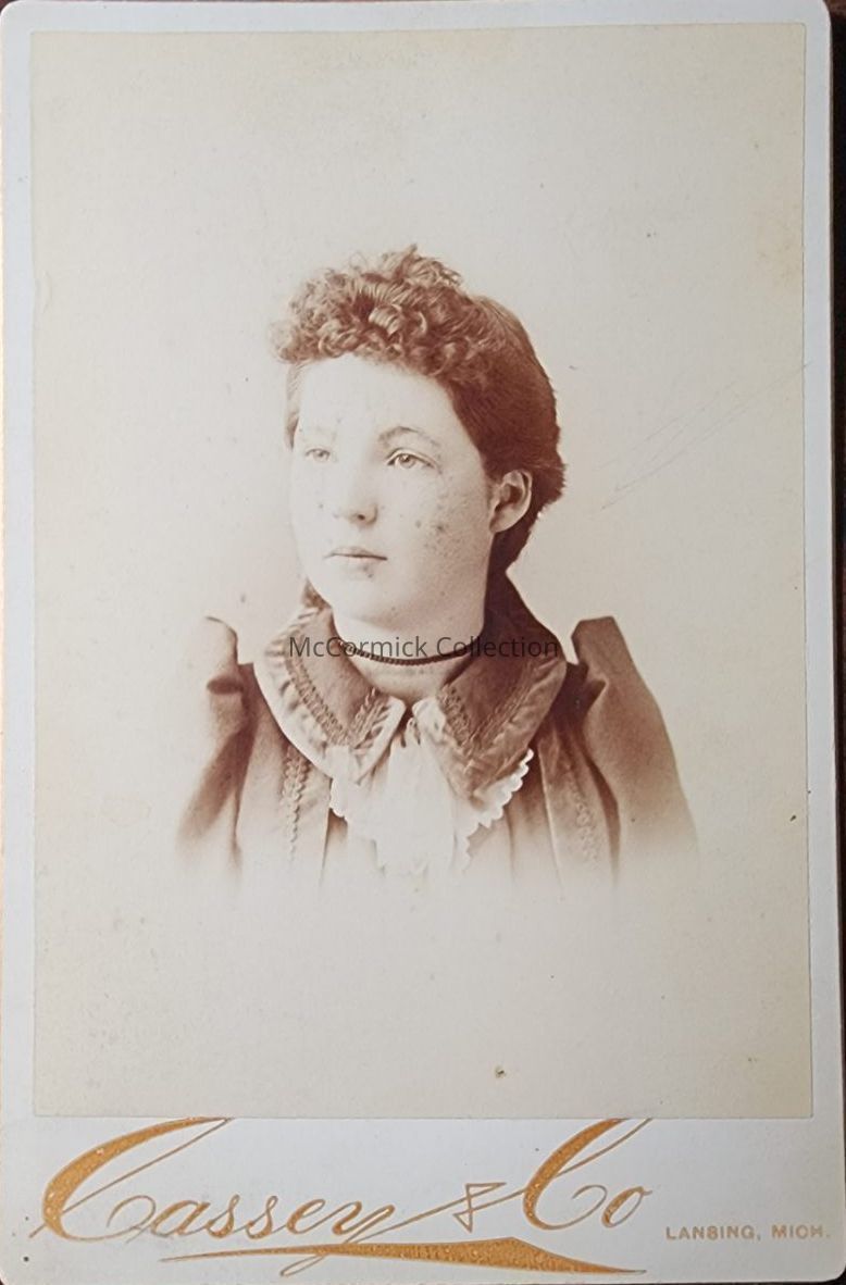 Cabinet card photograph of an unidentified woman by Lansing photographer Cassey and Co.