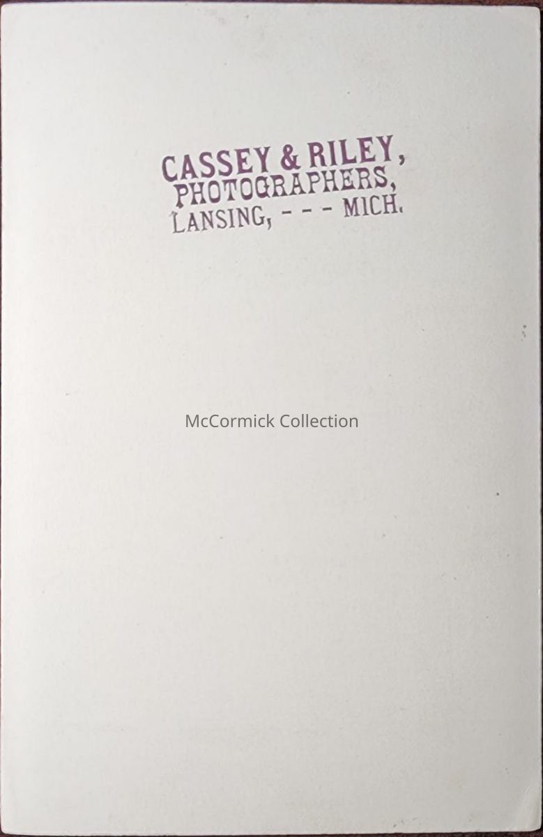Cabinet card photograph of an unidentified woman by Lansing photographer Cassey and Riley.