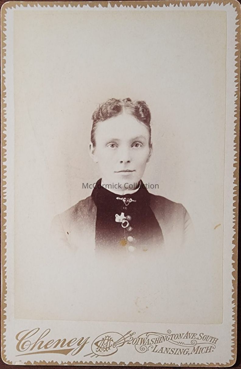 Cabinet card photograph of an unidentified woman by Lansing photographer Cheney.