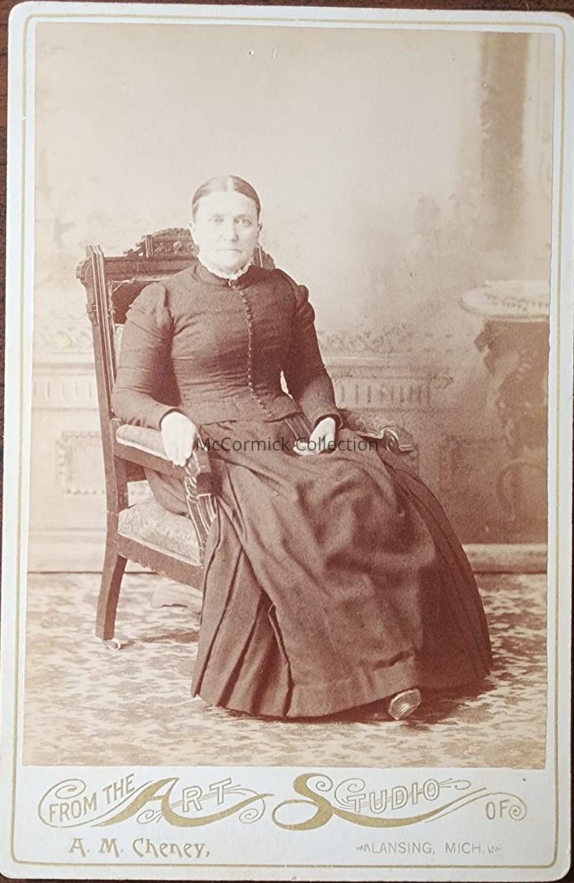 Cabinet card photograph of an unidentified woman by Lansing photographer Cheney.