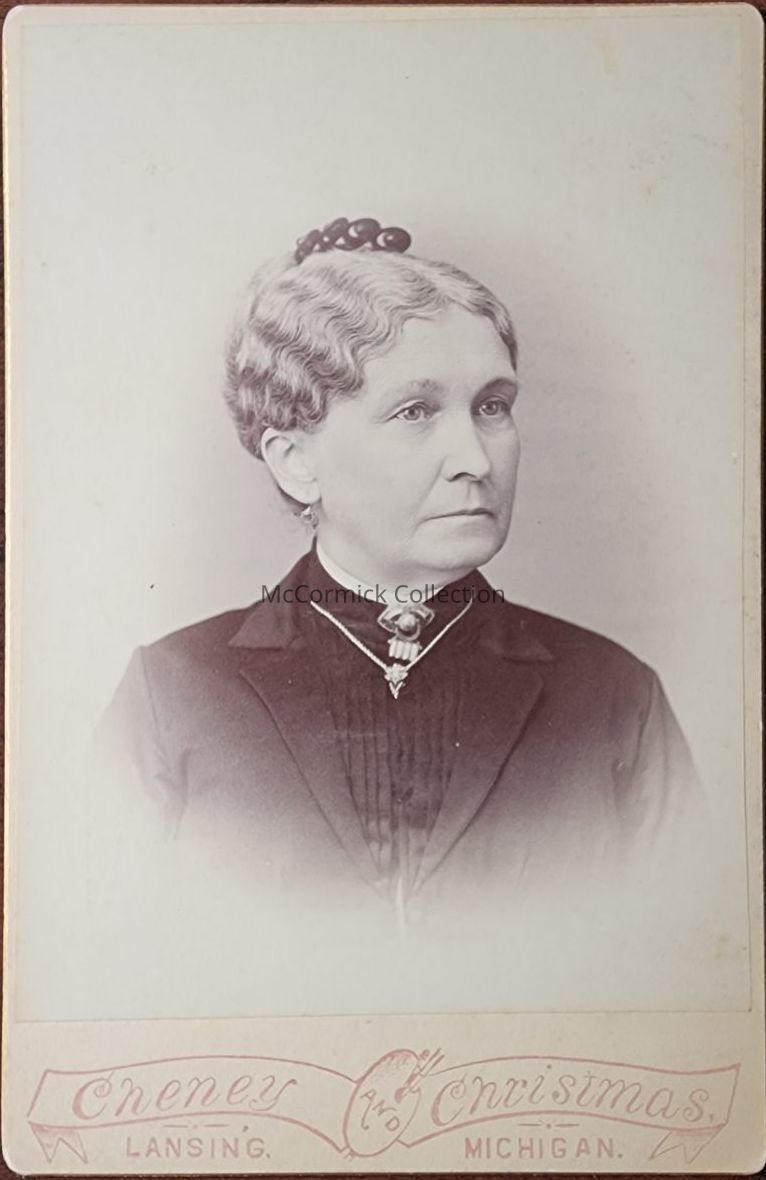 Cabinet card photograph of an unidentified woman by Lansing photographer Cheney and Christmas.
