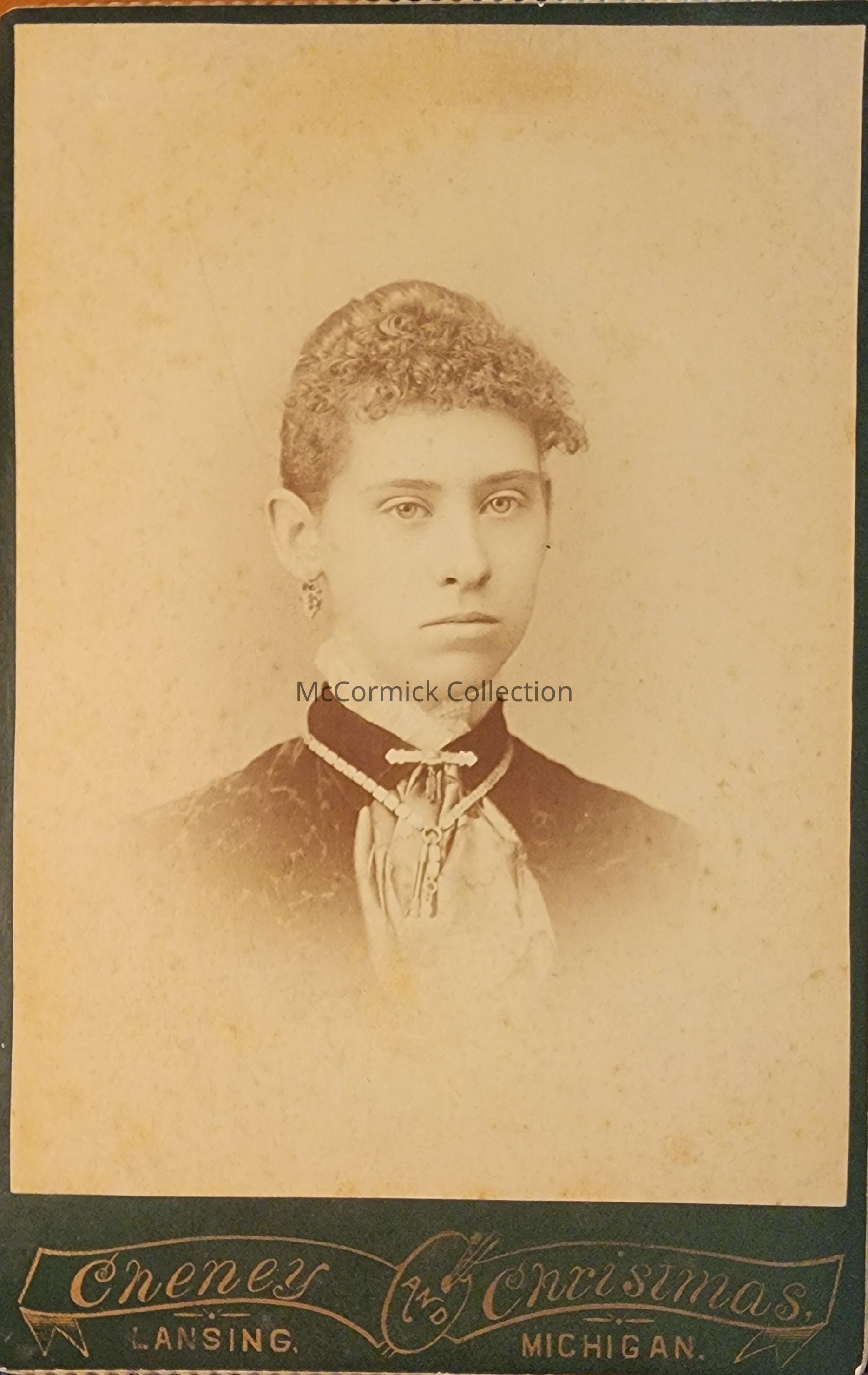 Cabinet card photograph of an unidentified woman by Lansing photographer Cheney and Christmas.