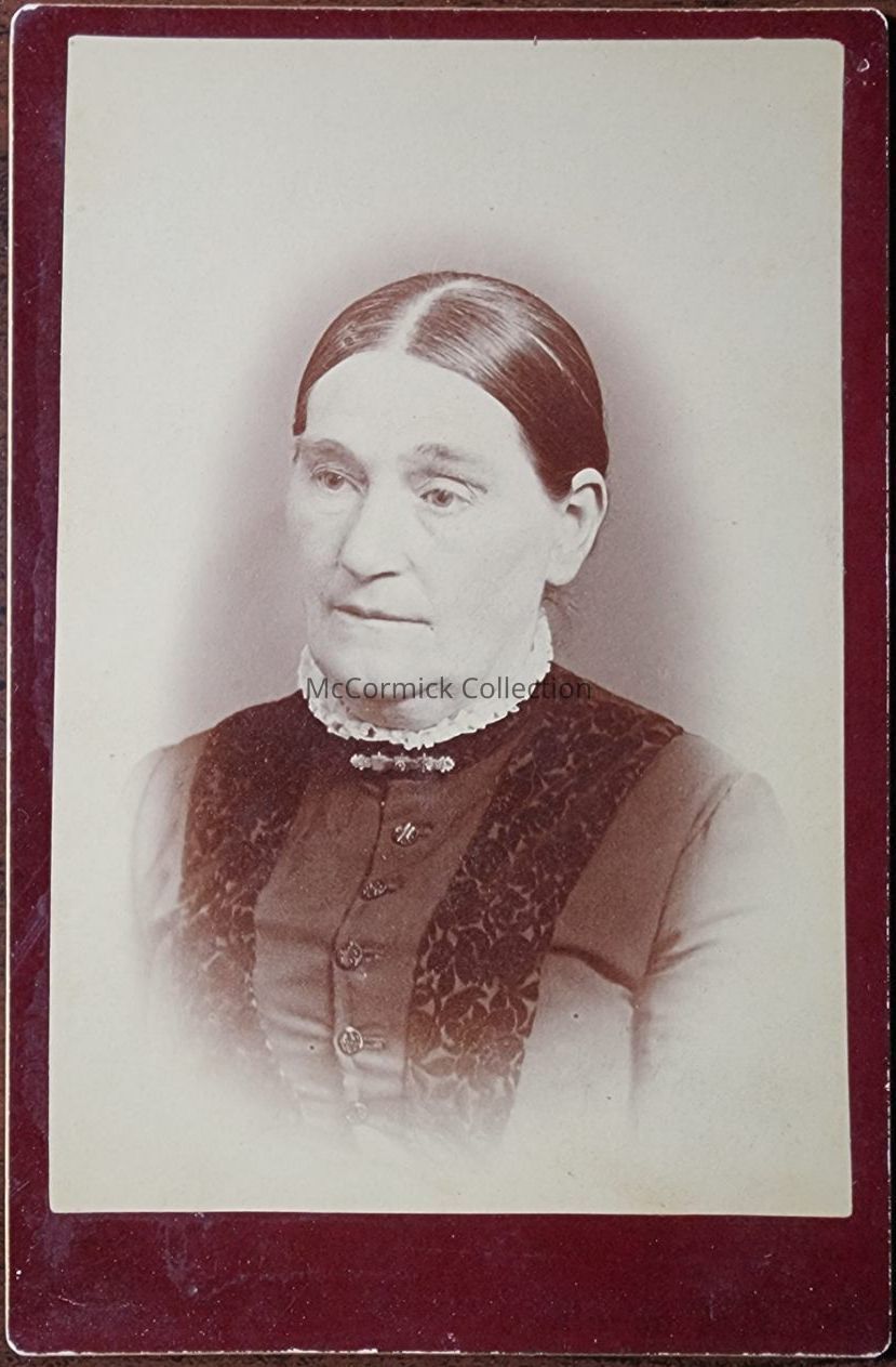 Cabinet card photograph of a woman, maybe the wife of O.W. Slayton, by Lowell, Michigan photographer Milo Hiler.
