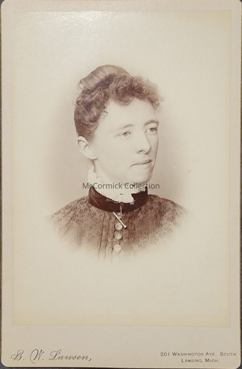 Cabinet card photograph of an unidentified woman by Lansing photographer Lawson.