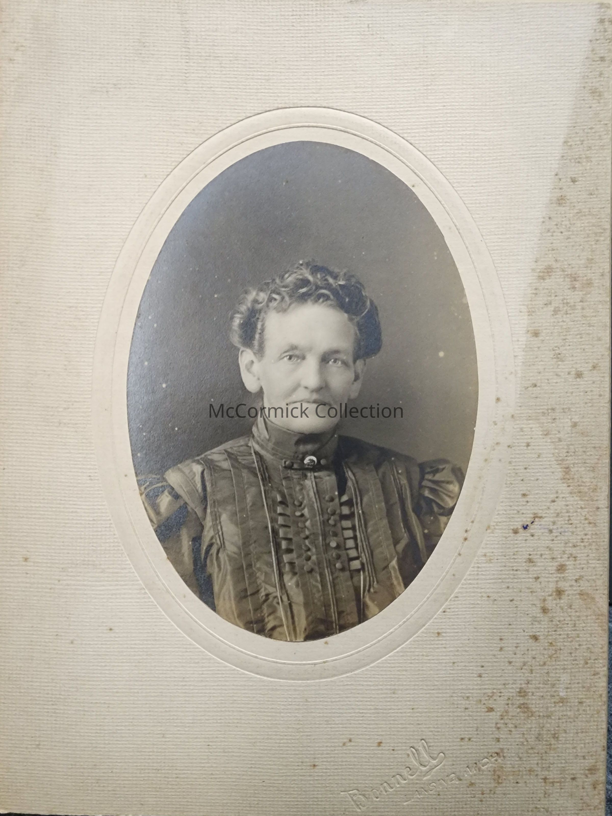 Card mounted photograph of an unidentified woman by Lansing photographer Bonnell.