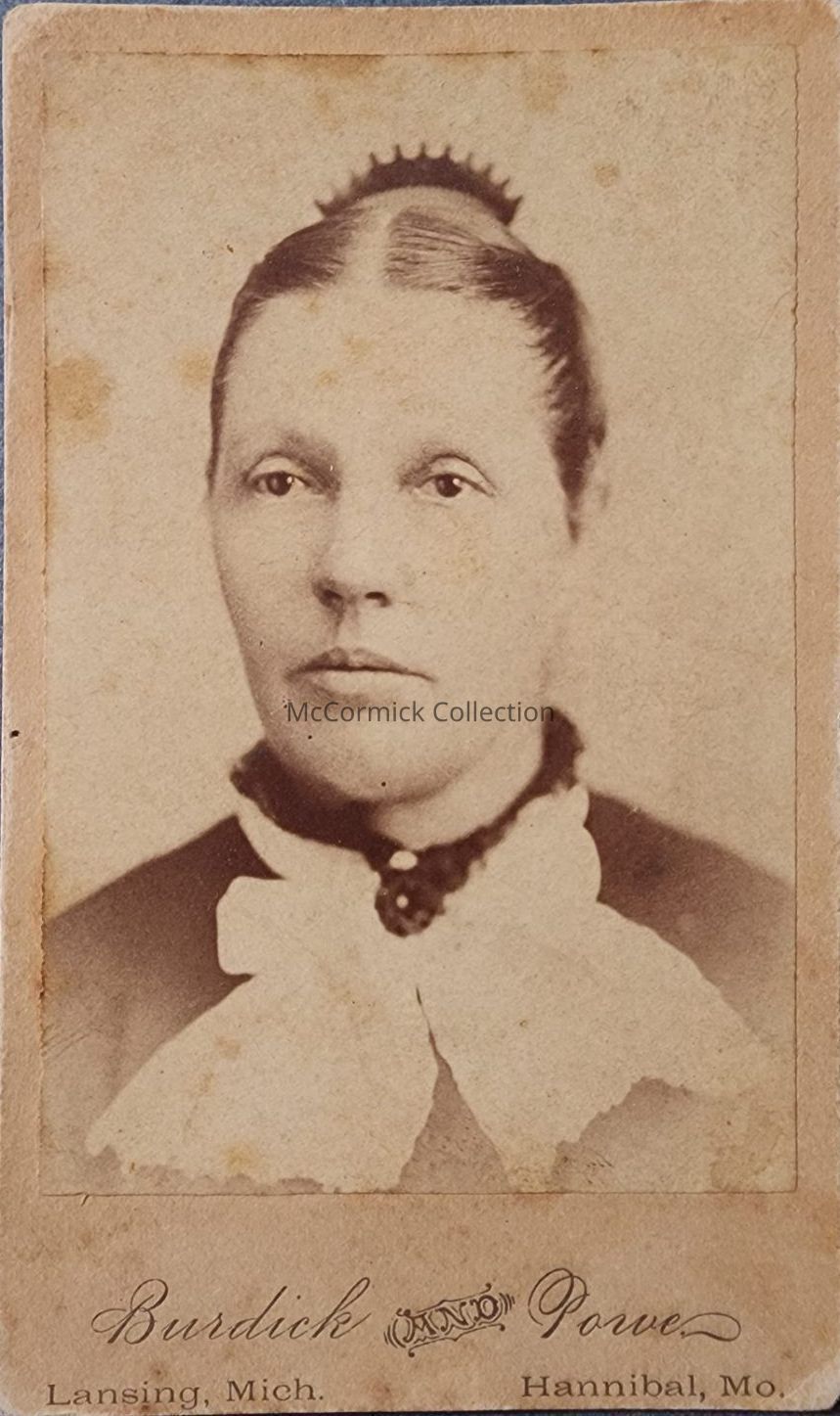 Carte de visite photograph of an unidentified woman by Lansing photographer Burdick and Powe.