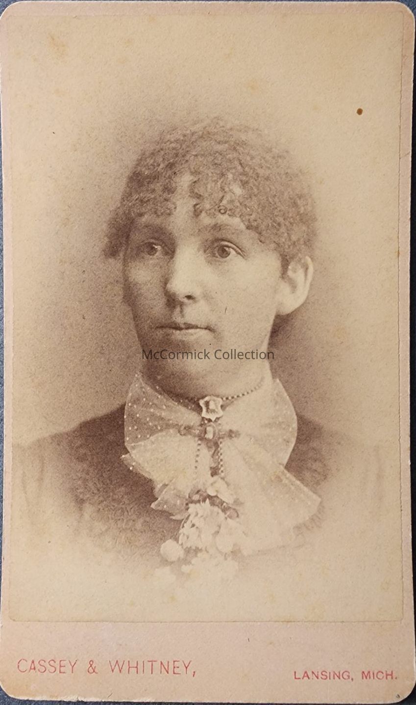 Carte de visite photograph of an unidentified woman by Lansing photographer Cassey and Whitney.