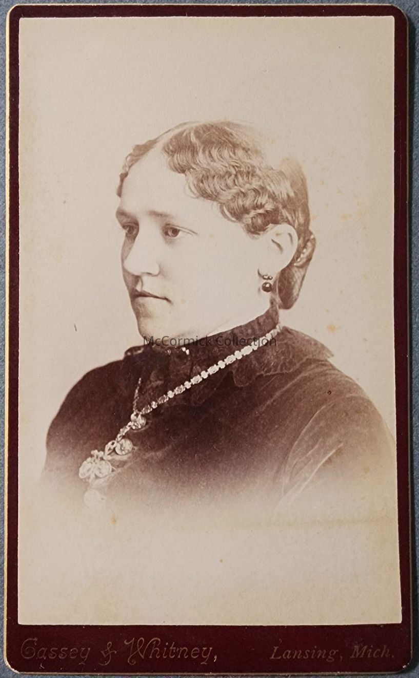 Carte de visite photograph of an unidentified woman by Lansing photographer Cassey and Whitney.