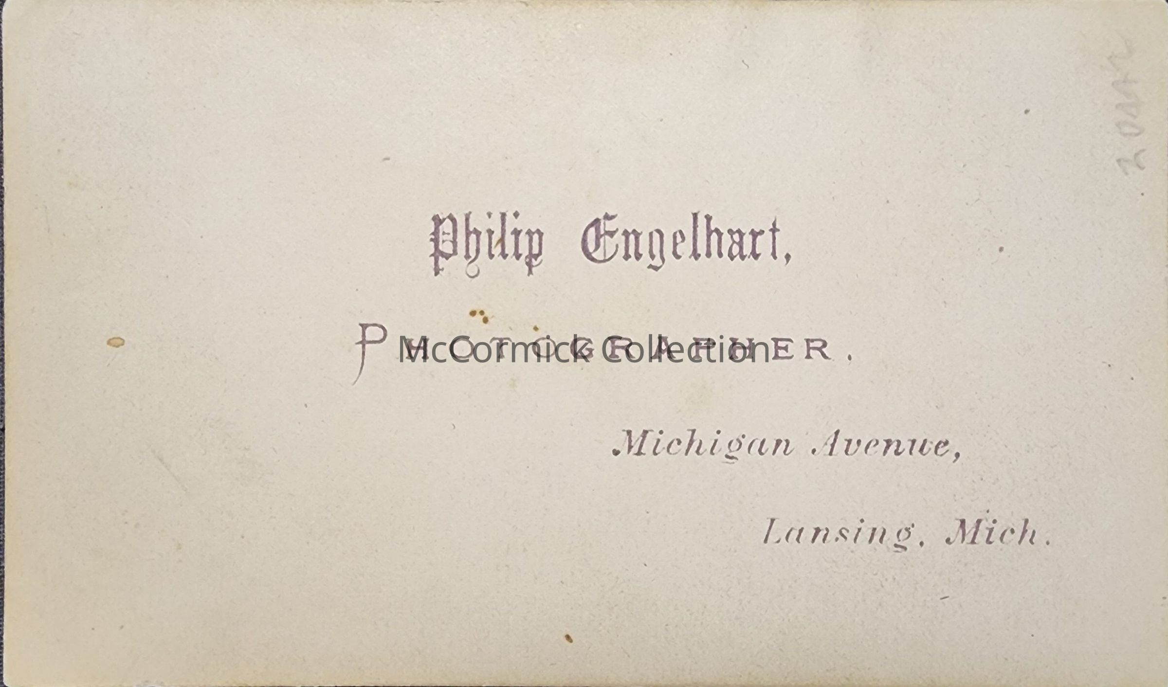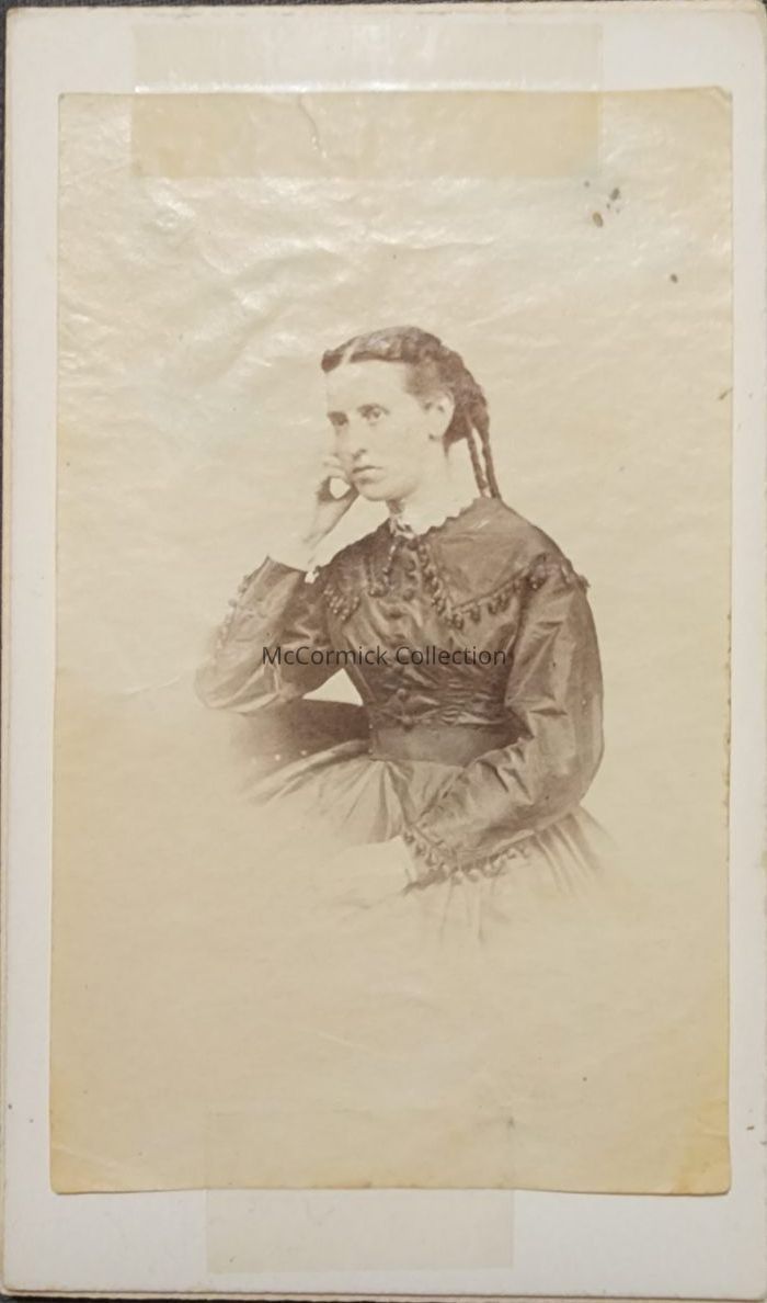 Carte de visite photograph of an unidentified woman by Lansing photographer Philip Engelhart. CDV split in half.