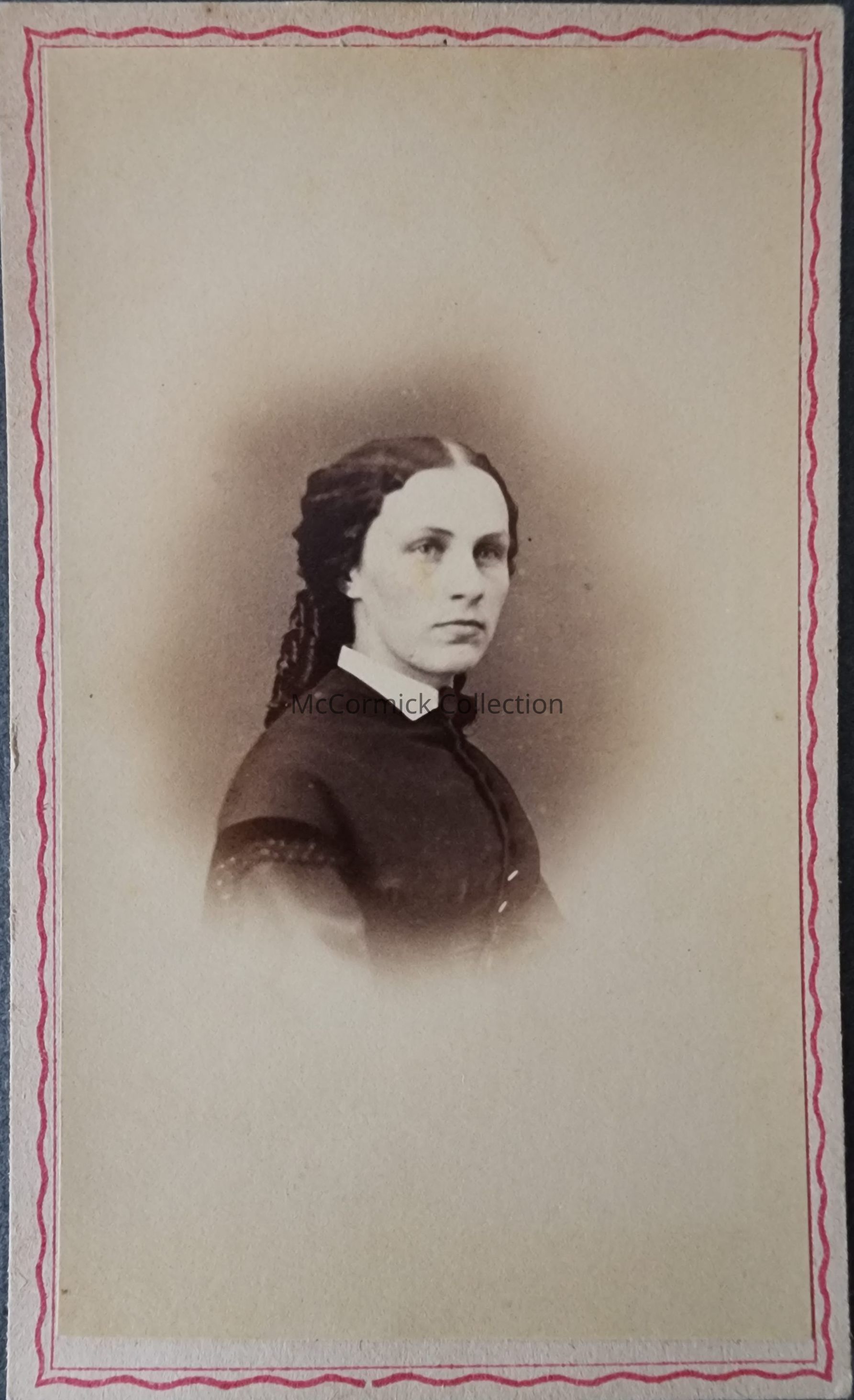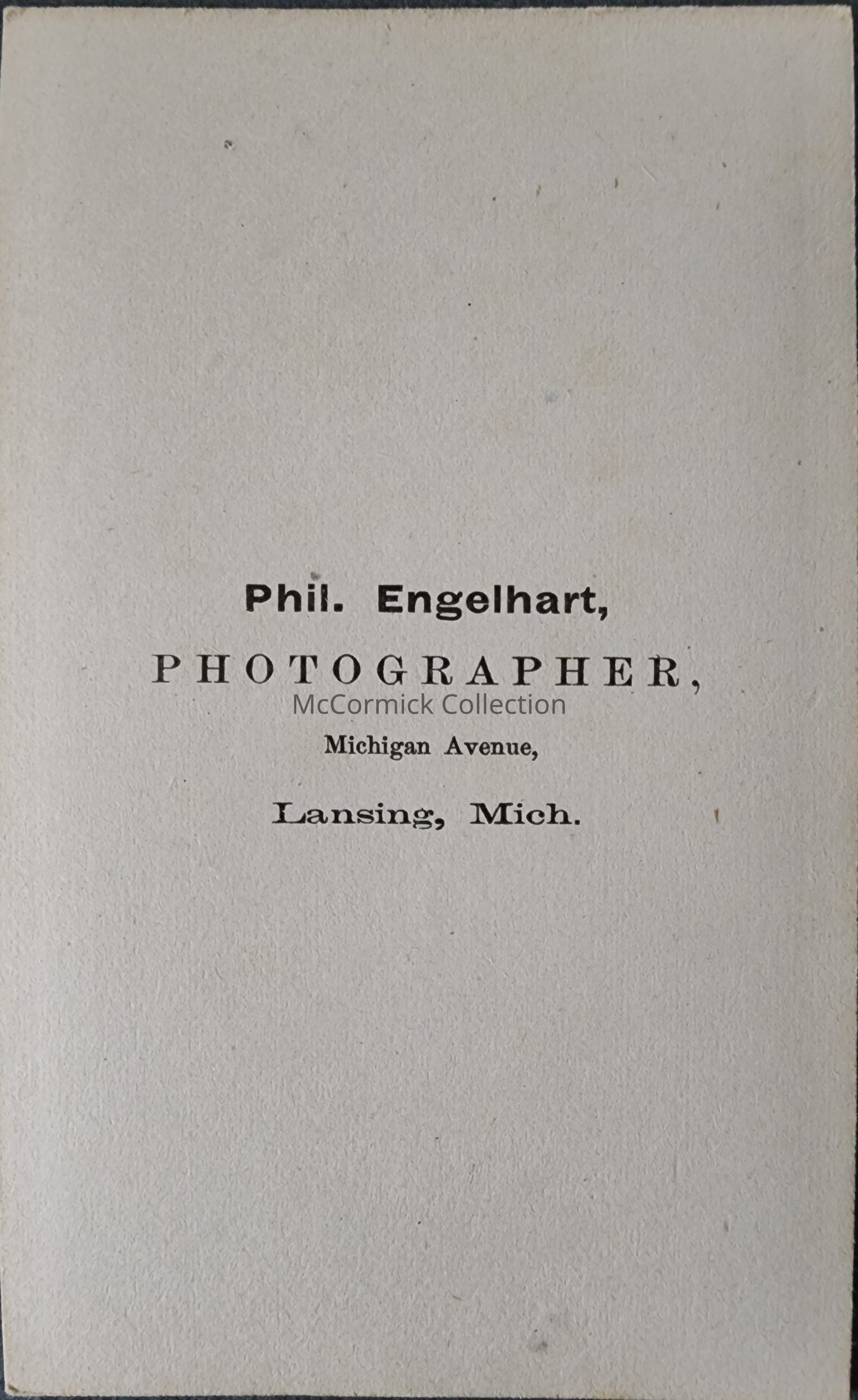 Carte de visite photograph of an unidentified woman by Lansing photographer Engelhart, circa 1864-1876.