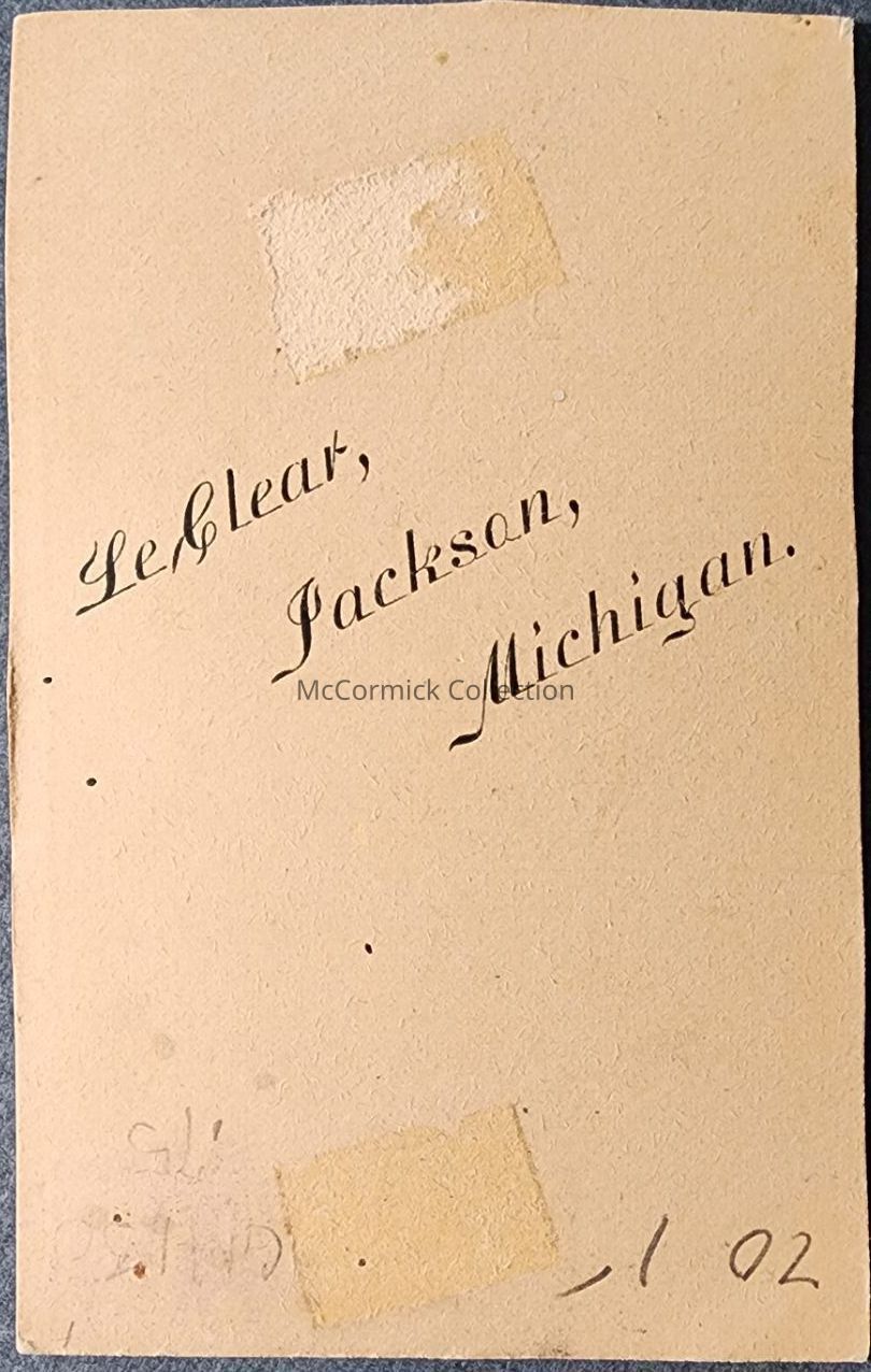 Carte de visite photograph of an unidentified woman by Lansing photographer LeClear, working in Jackson.