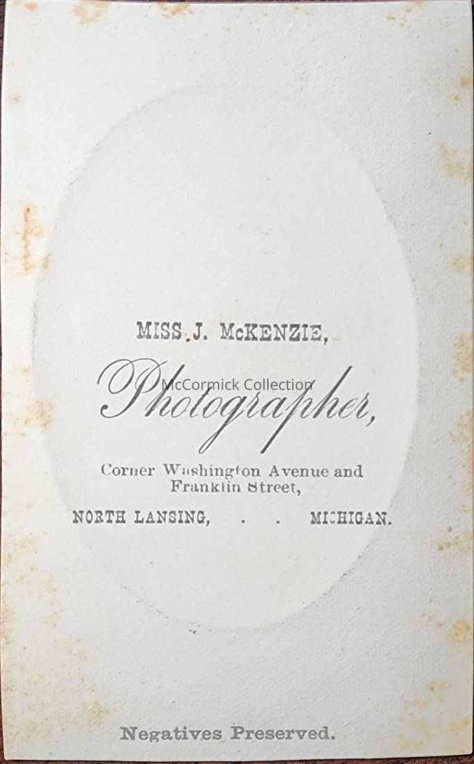 Carte de visite photograph of an unidentified woman by Lansing photographer Miss J. McKenzie.