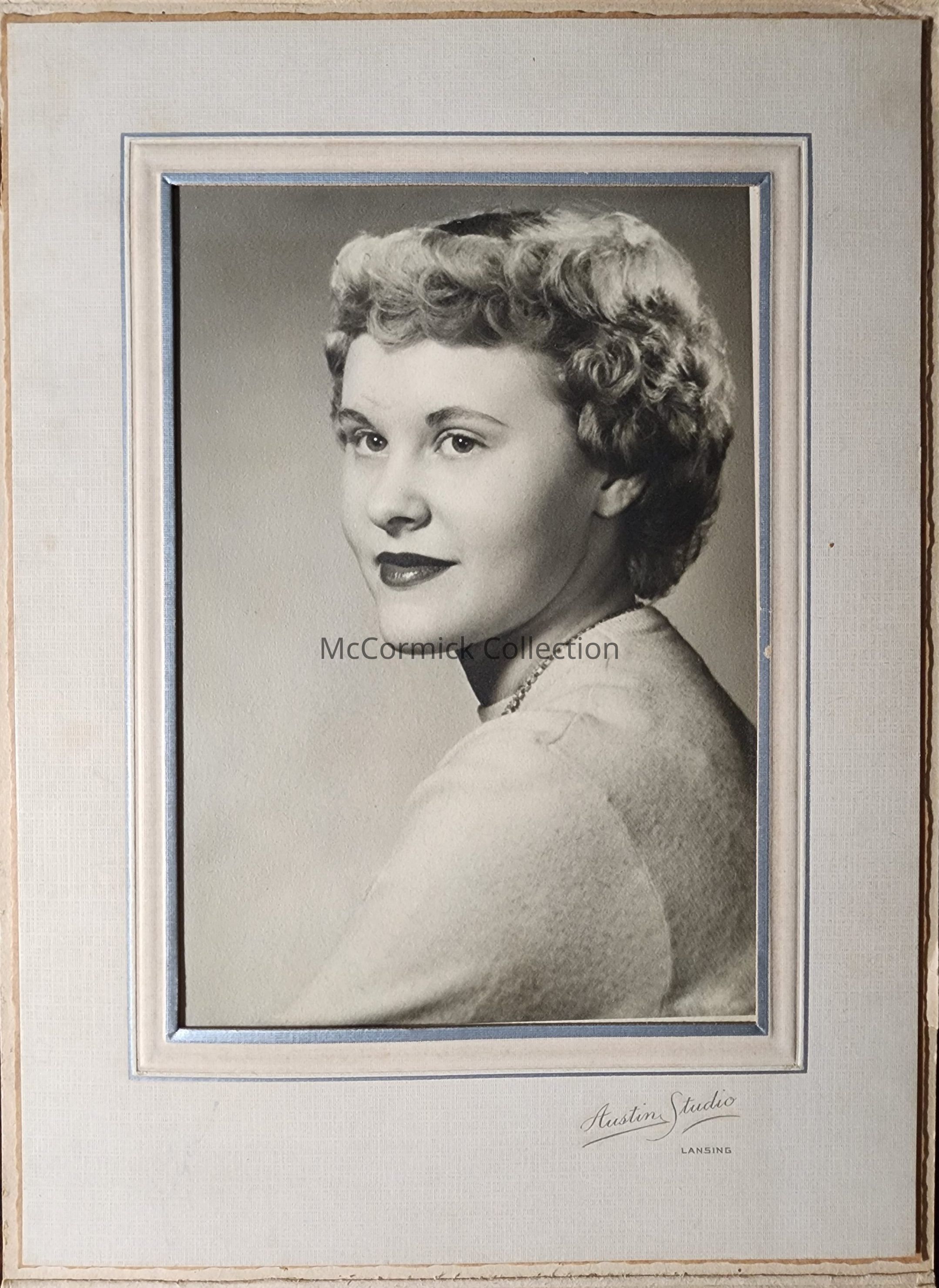 Portrait photograph of an unidentified woman by Lansing photographer Austin Studio. From Siebert Estate.