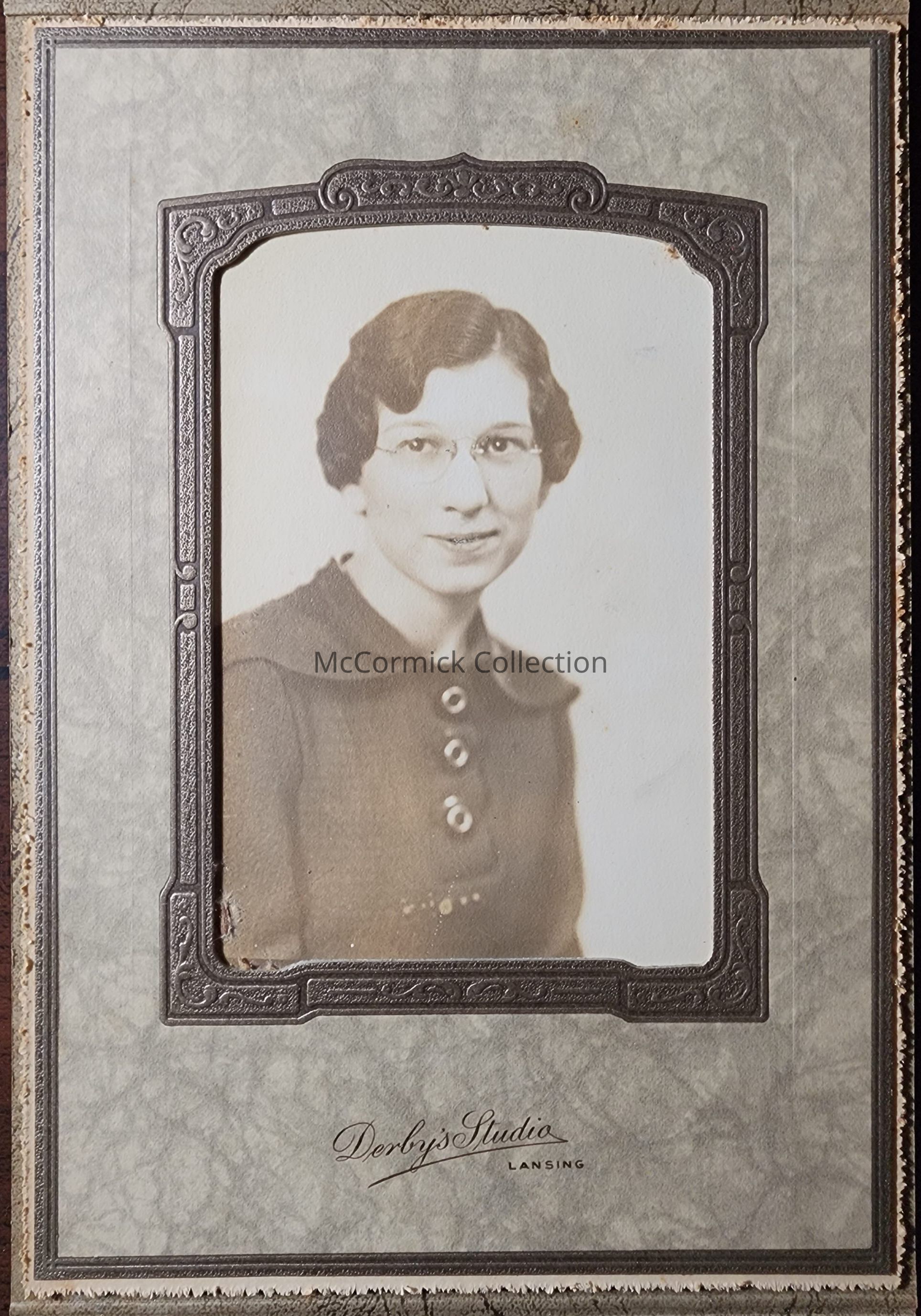 Portrait photograph of an unidentified woman by Lansing photographer Derby.