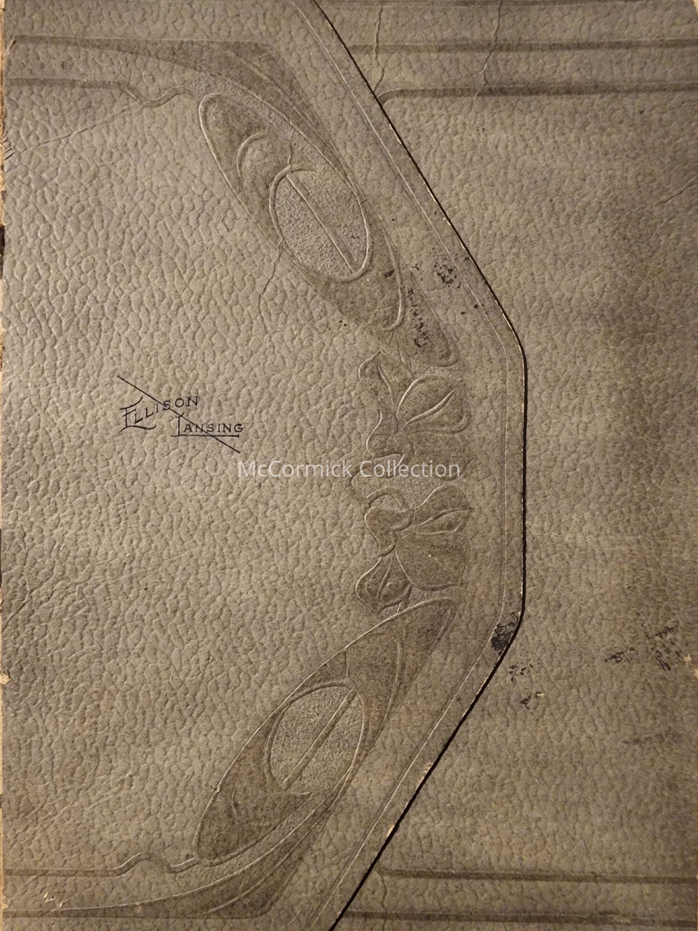 Folder frame mounted photograph of an unidentified woman by Lansing photographer Ellison.