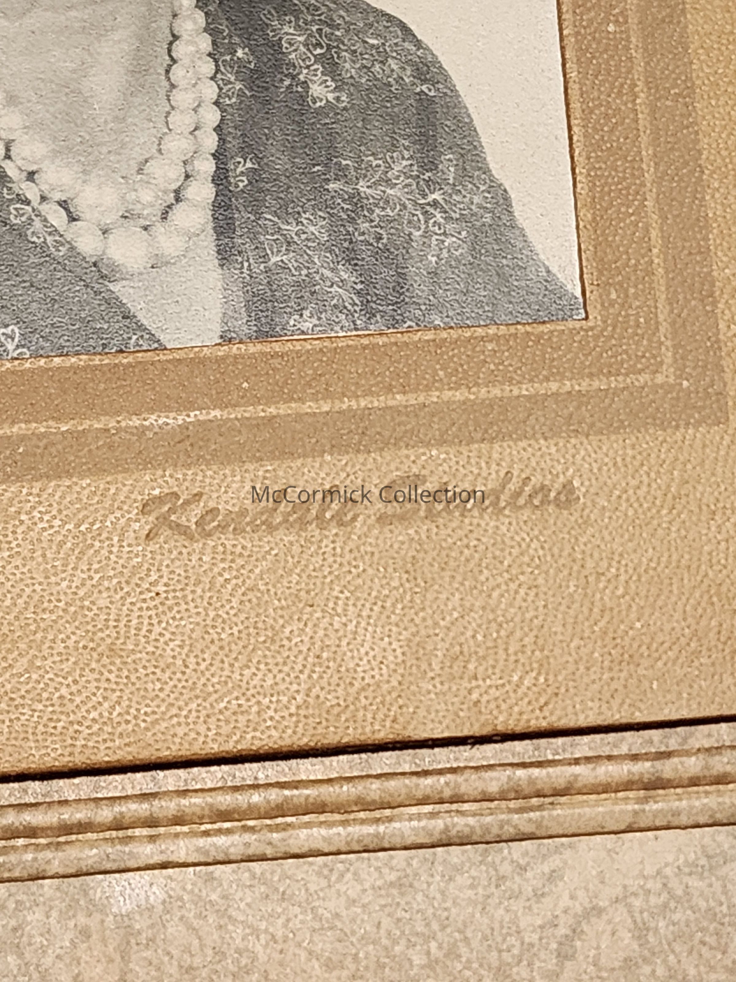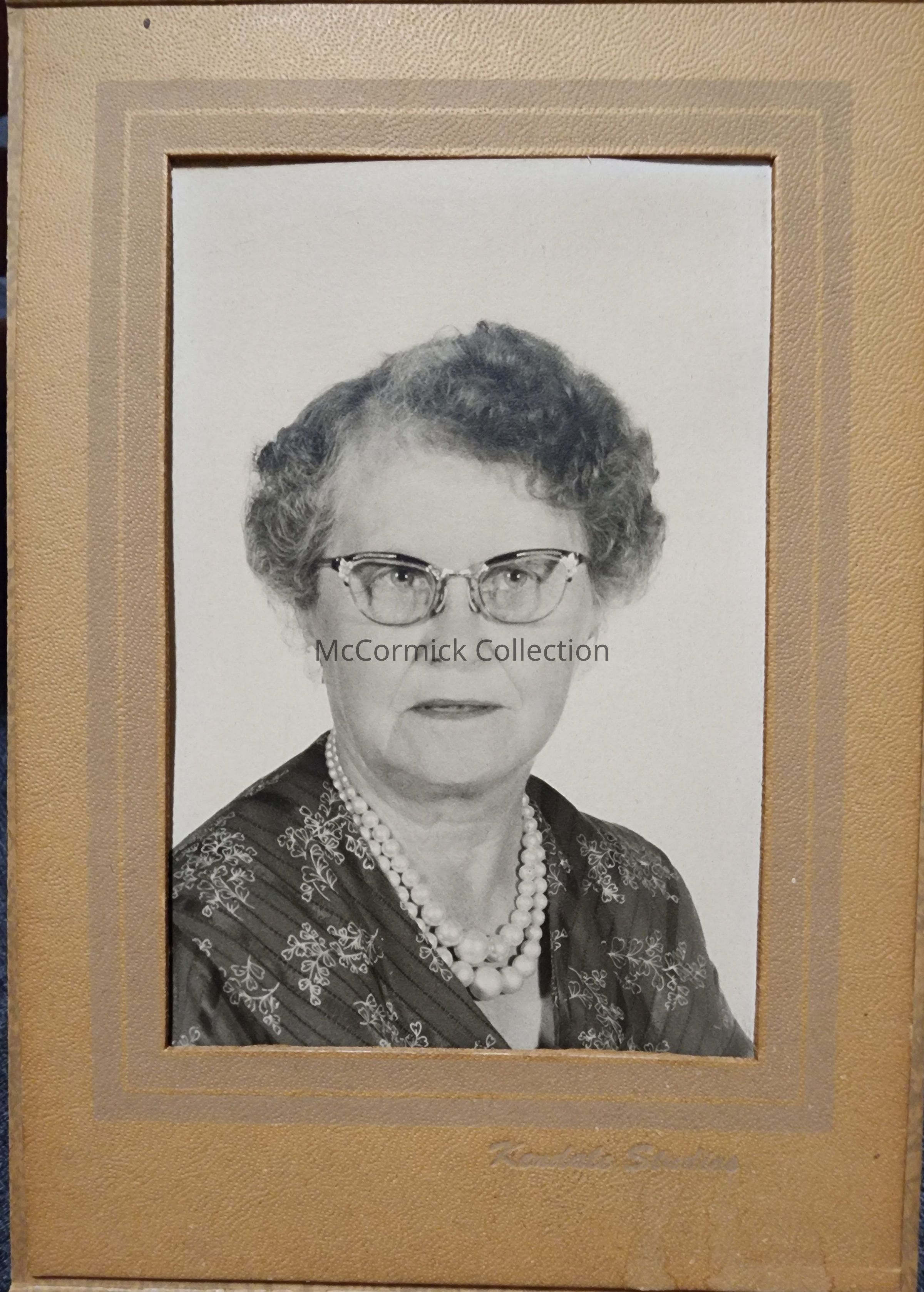 Folder frame mounted photograph of an unidentified woman by Lansing photographer Kendale Studios.