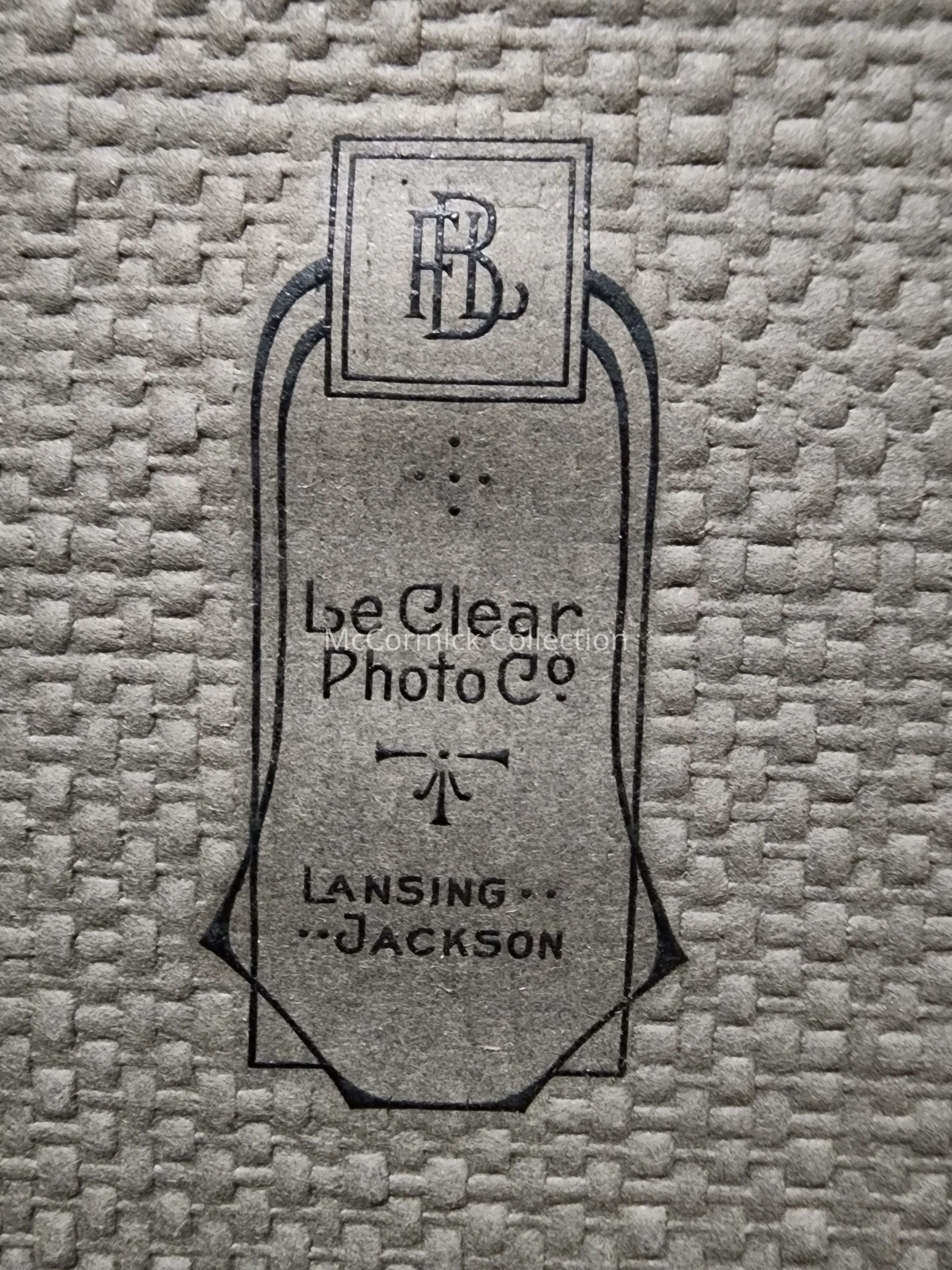 Folder frame mounted photograph of an unidentified woman by Lansing photographer LeClear, dated 1917. From the Chase Collection.