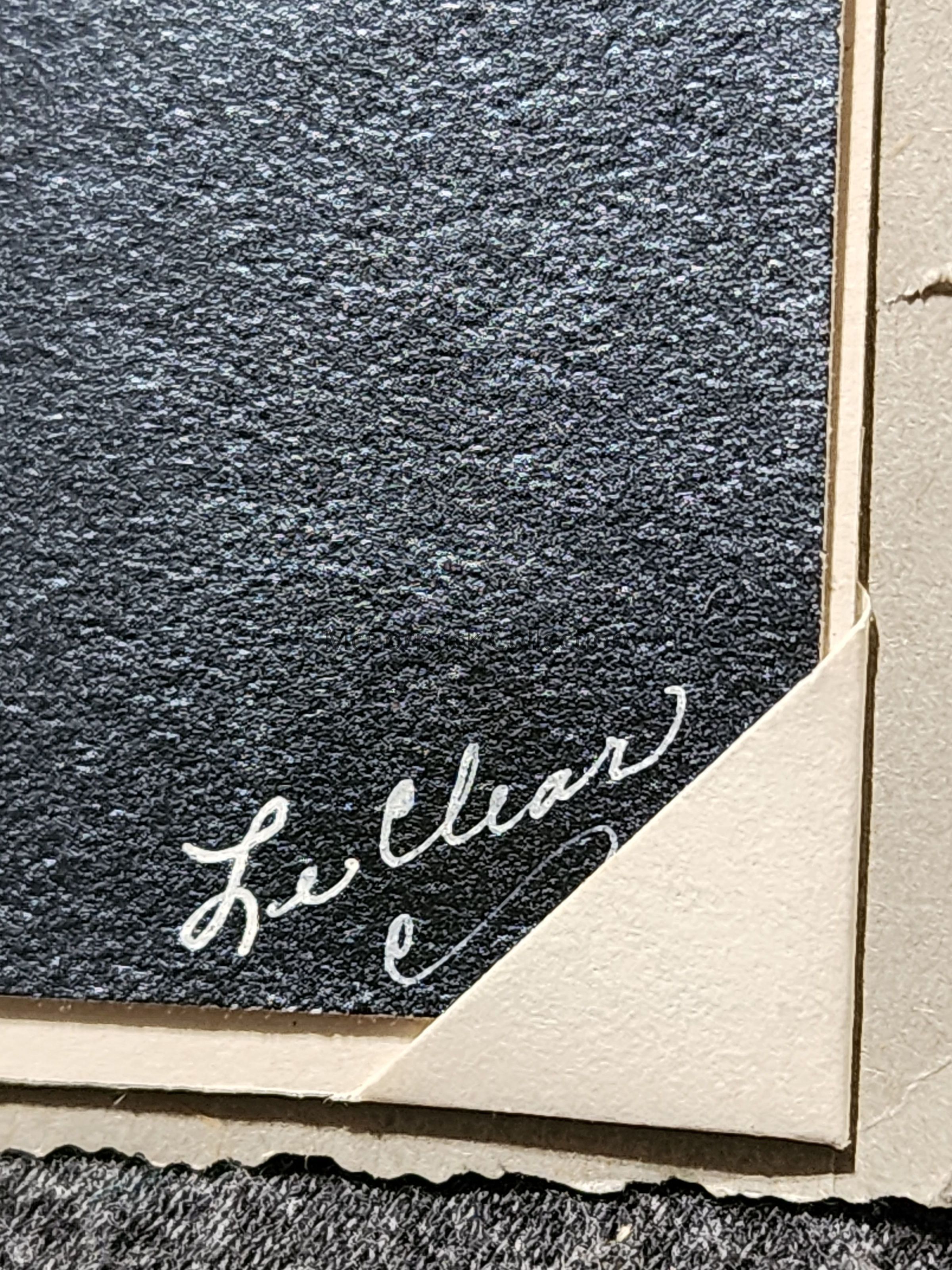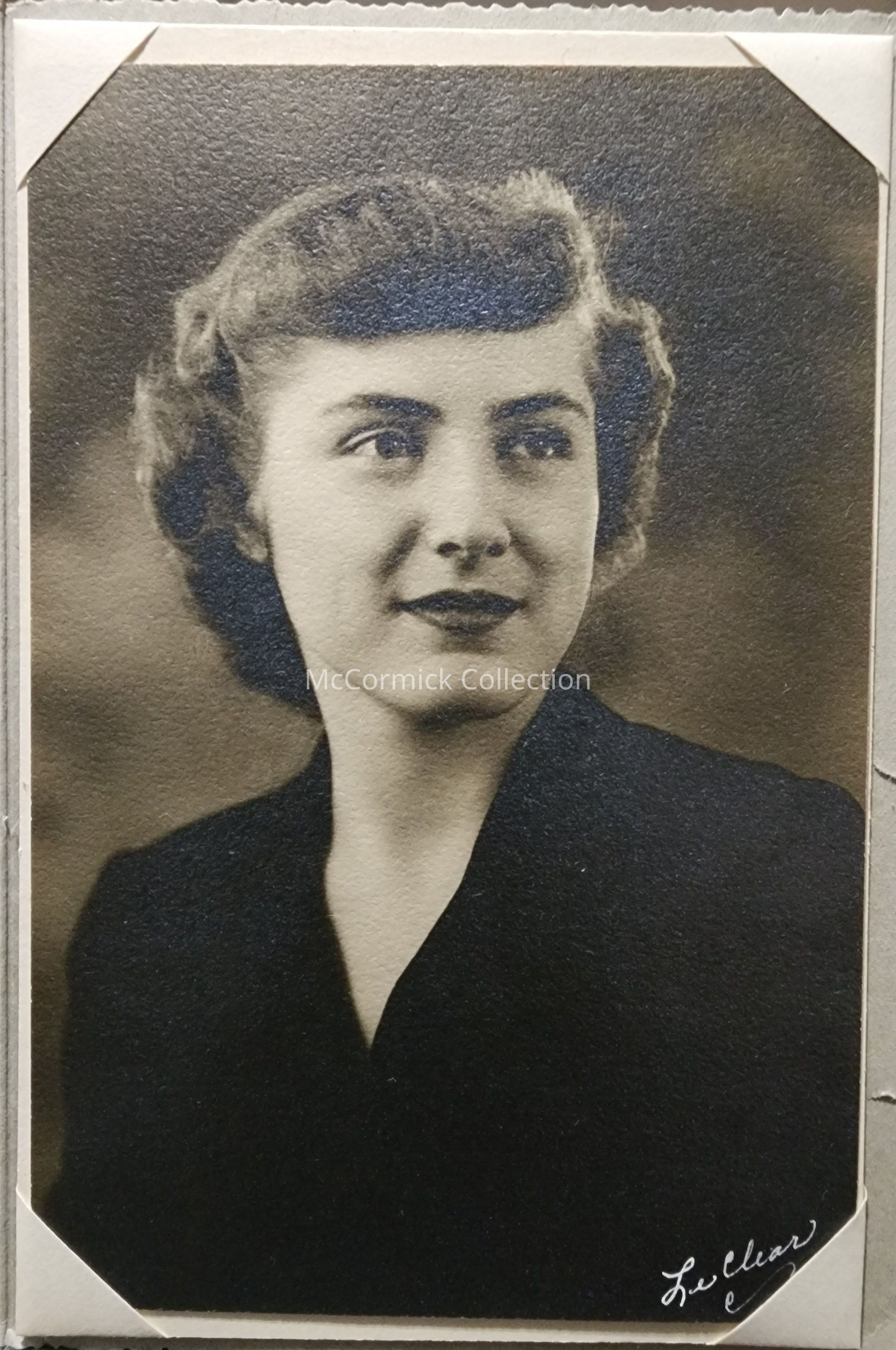 Folder mounted photograph of an unidentified woman by Lansing photographer LeClear.