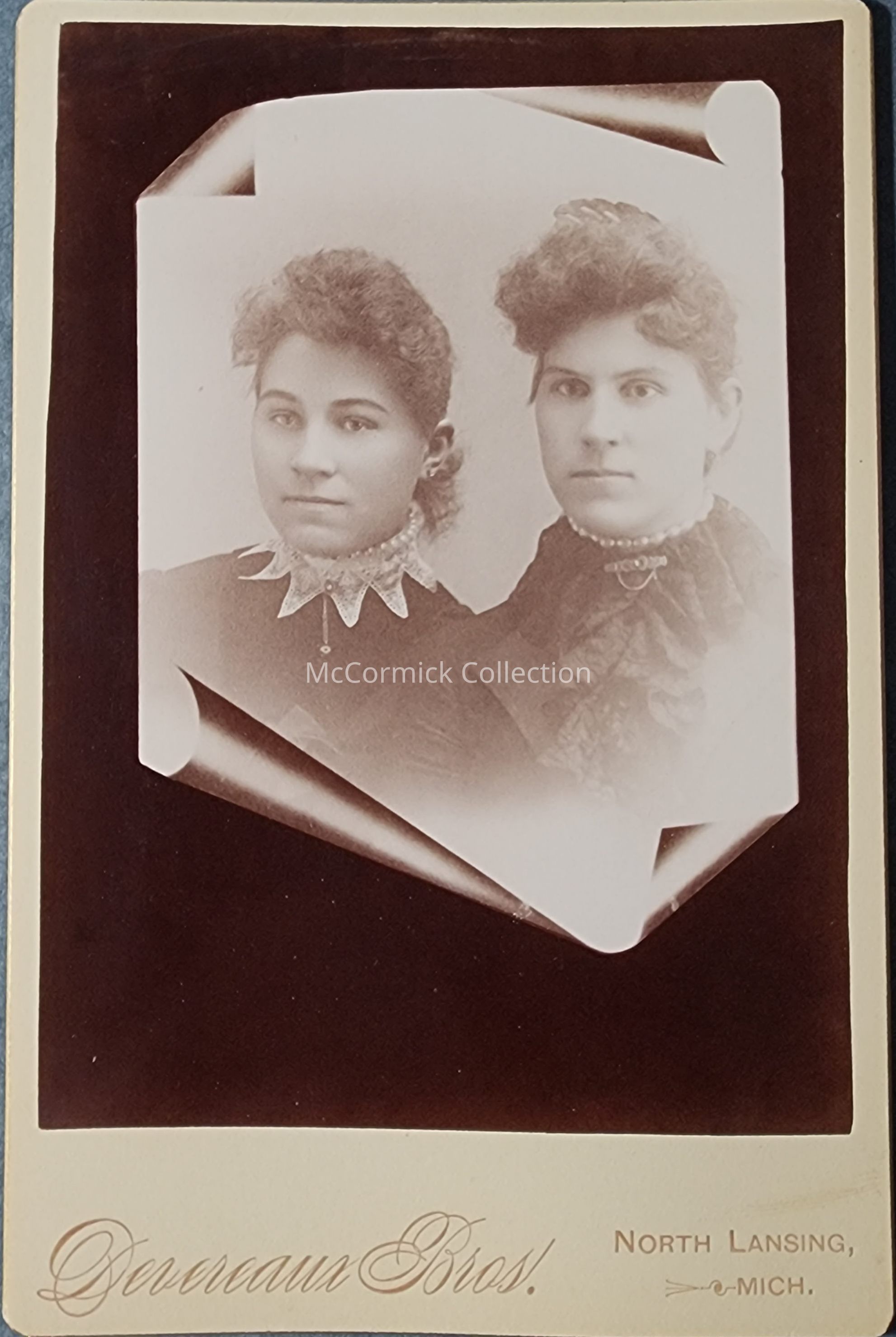 Cabinet card photograph of two unidentified women by North Lansing photographer Devereaux Bros., circa .