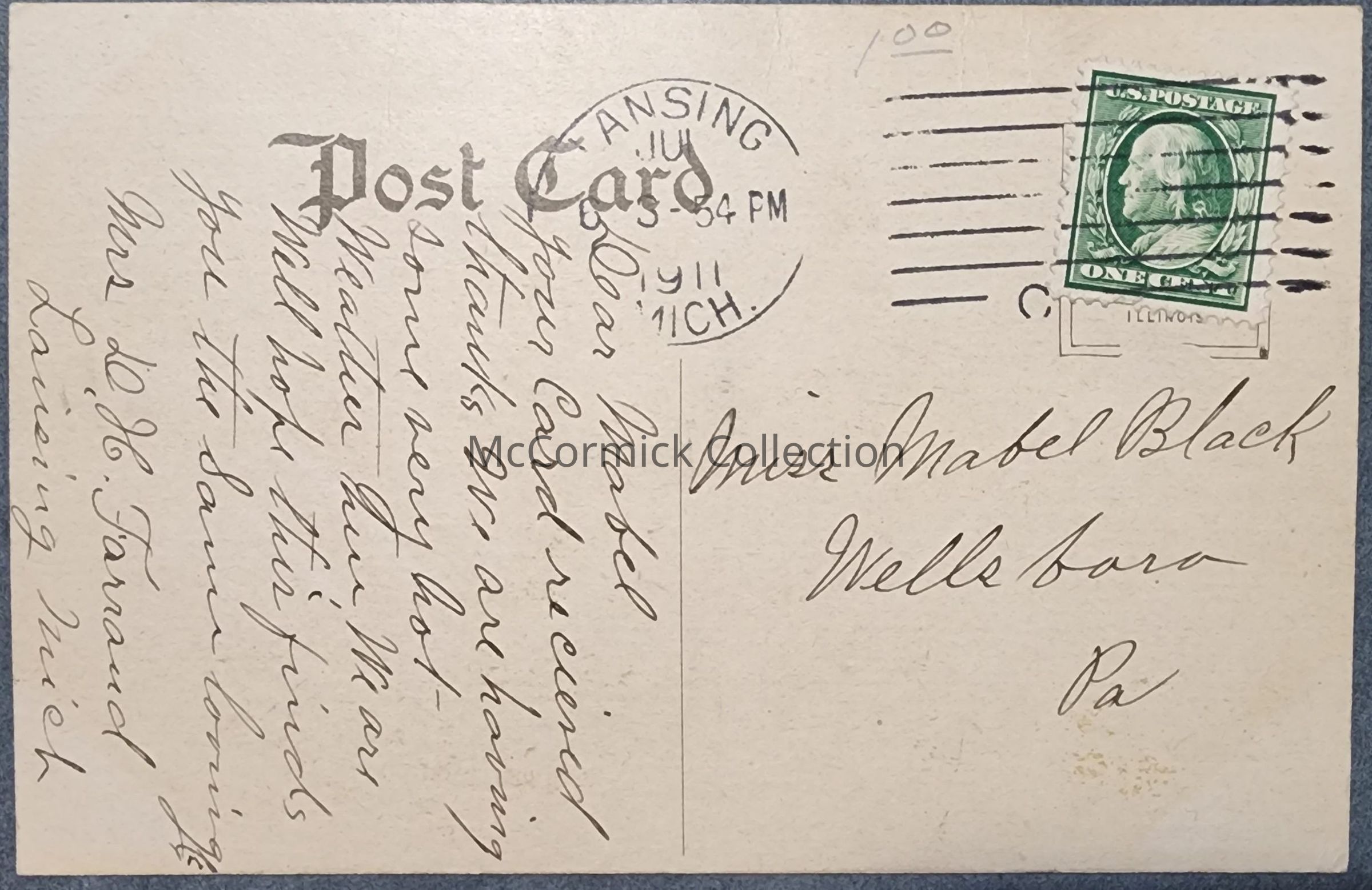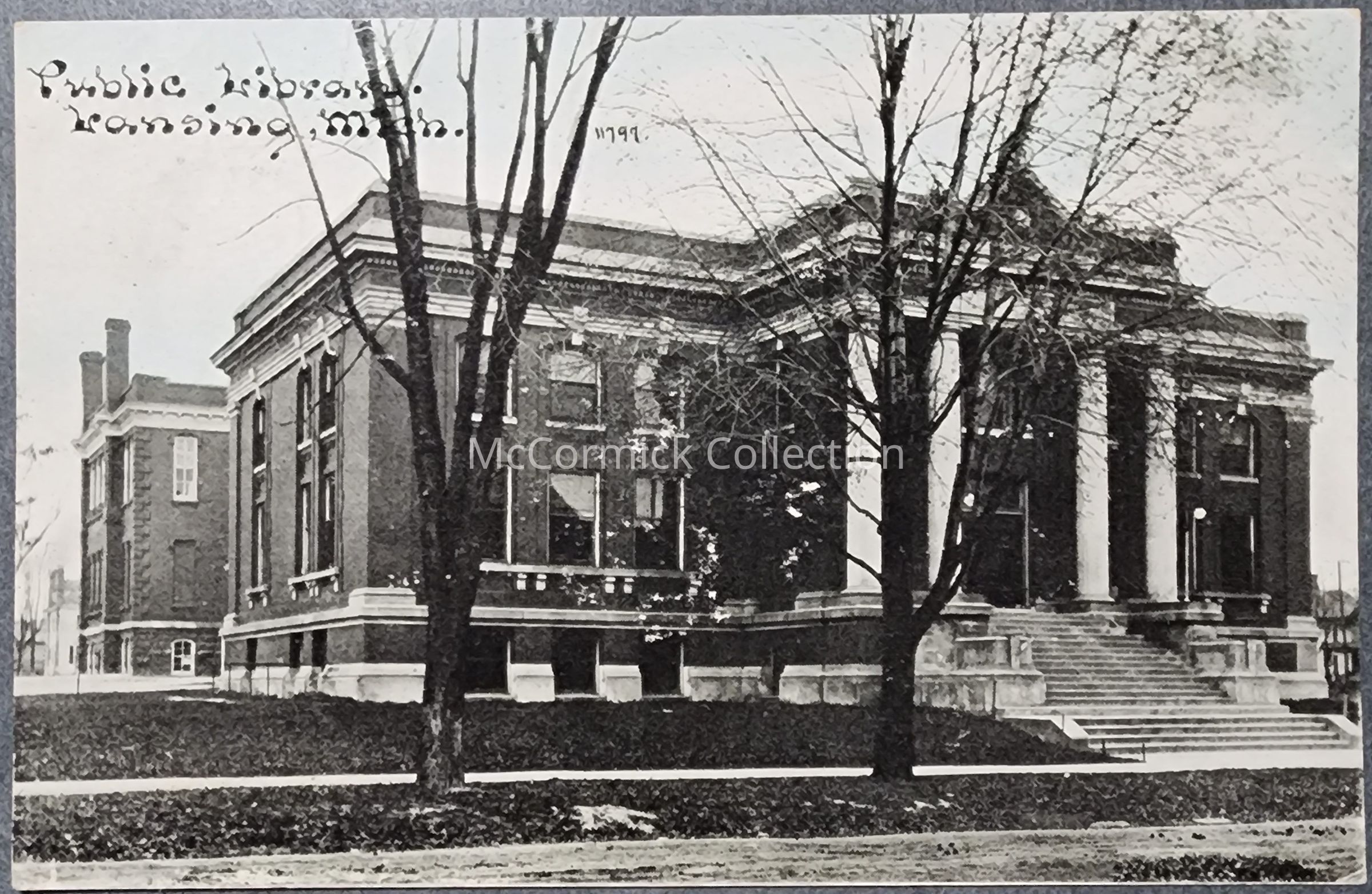 Postcard of the Lansing Carnegie Public Library, postally used, 1911 Lansing postmark.