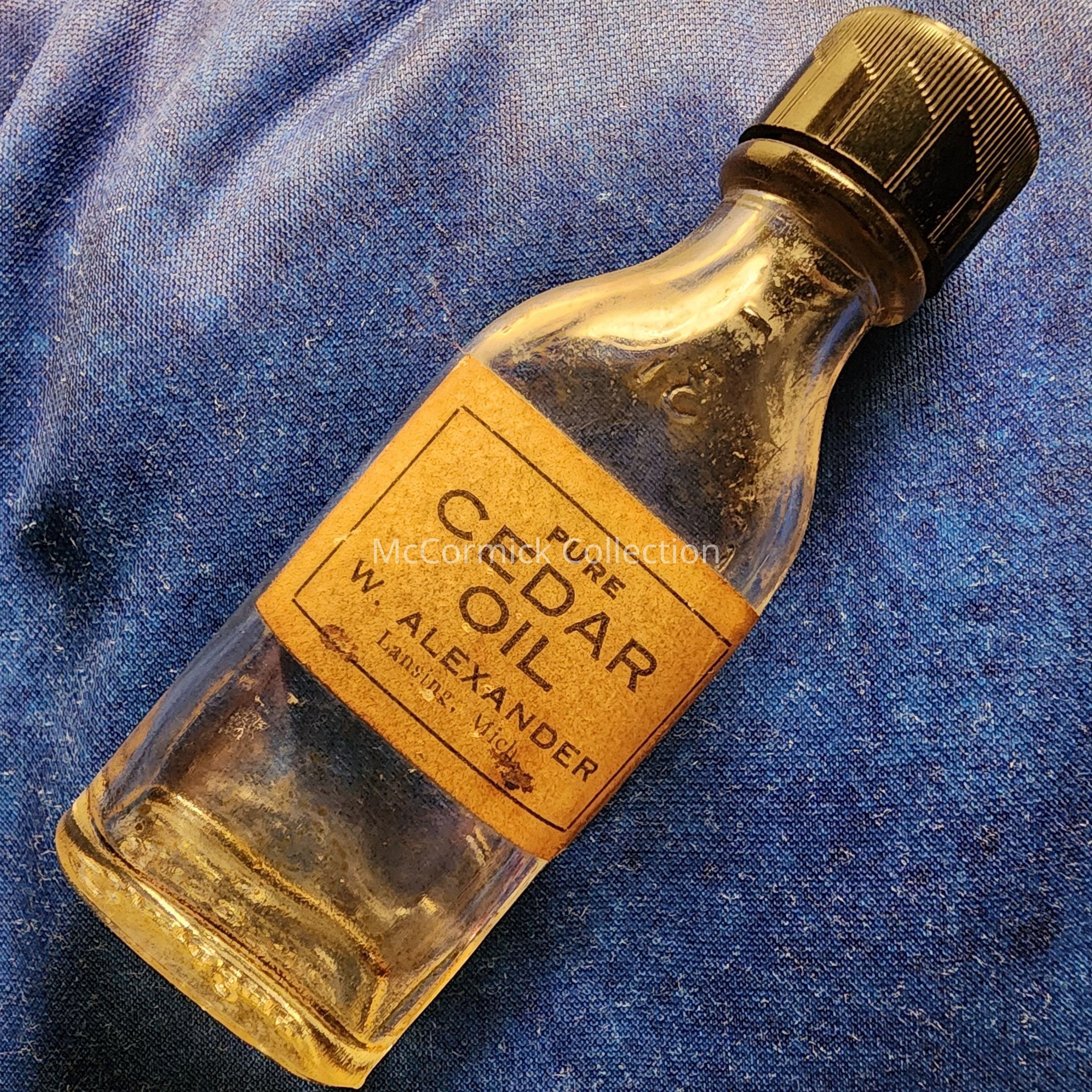 Pure Cedar Oil, W. Alexander, Lansing, Mich., Bottle