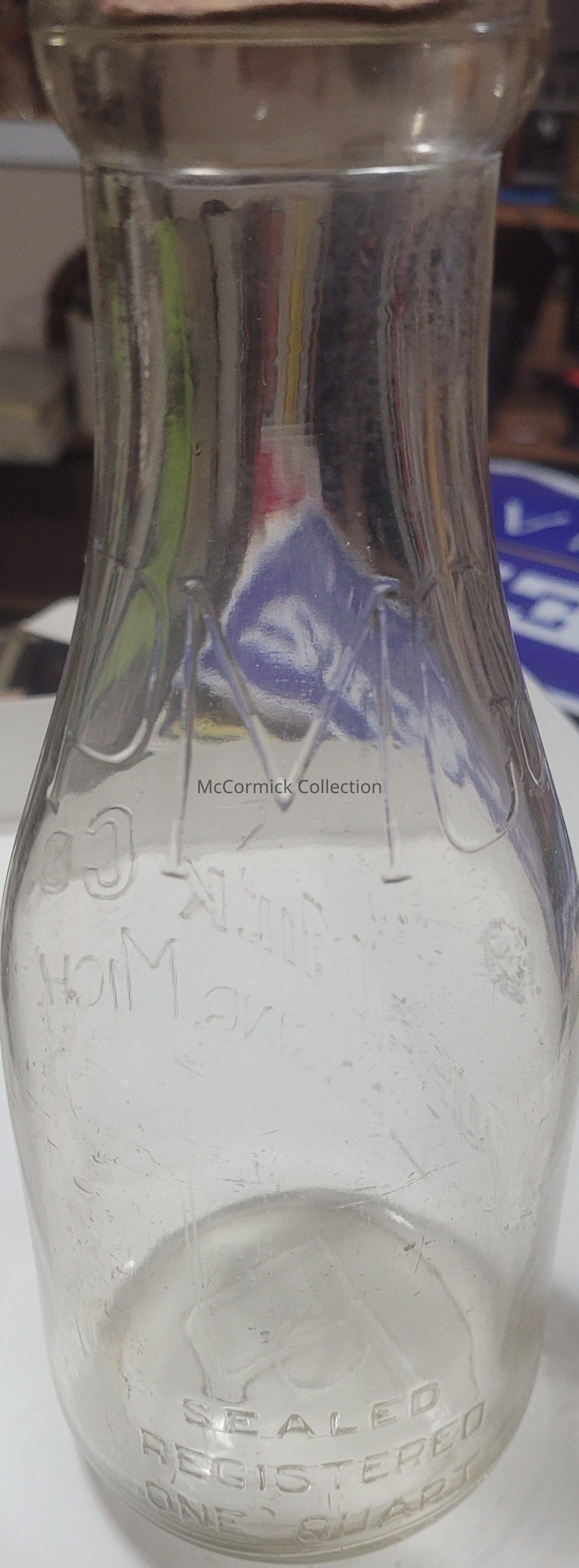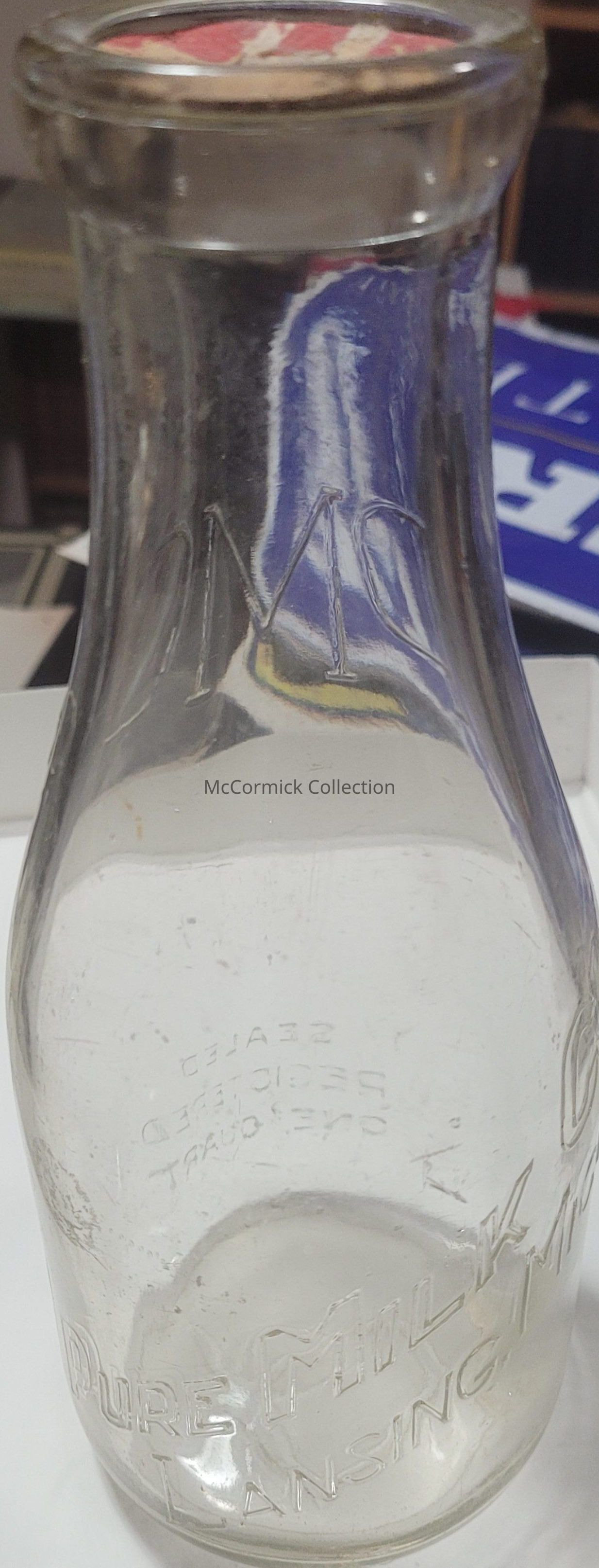 An embossed quart from Pure Milk Company of Lansing, Michigan.