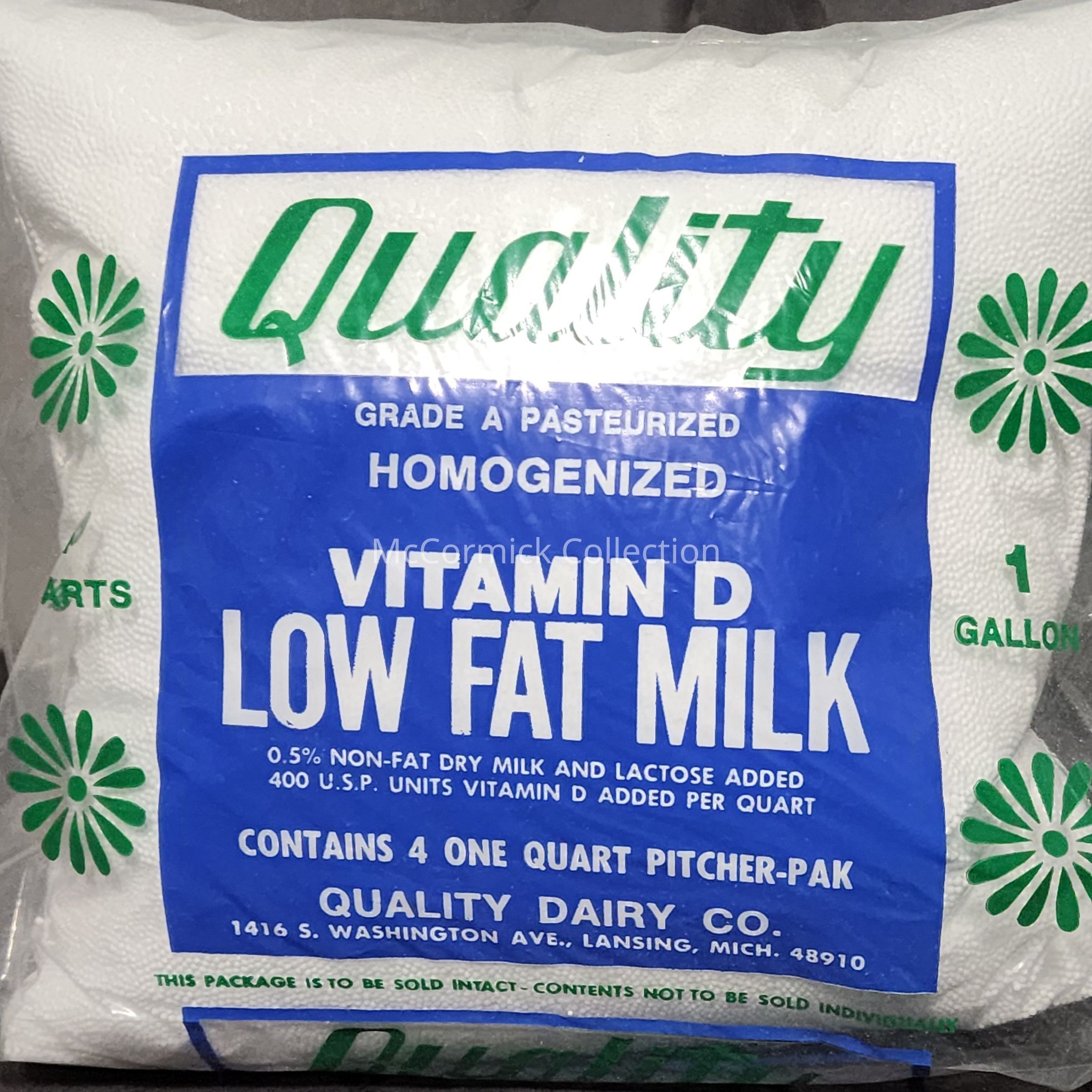 A gallon plastic bag for Quality Dairy Vitamin D milk.