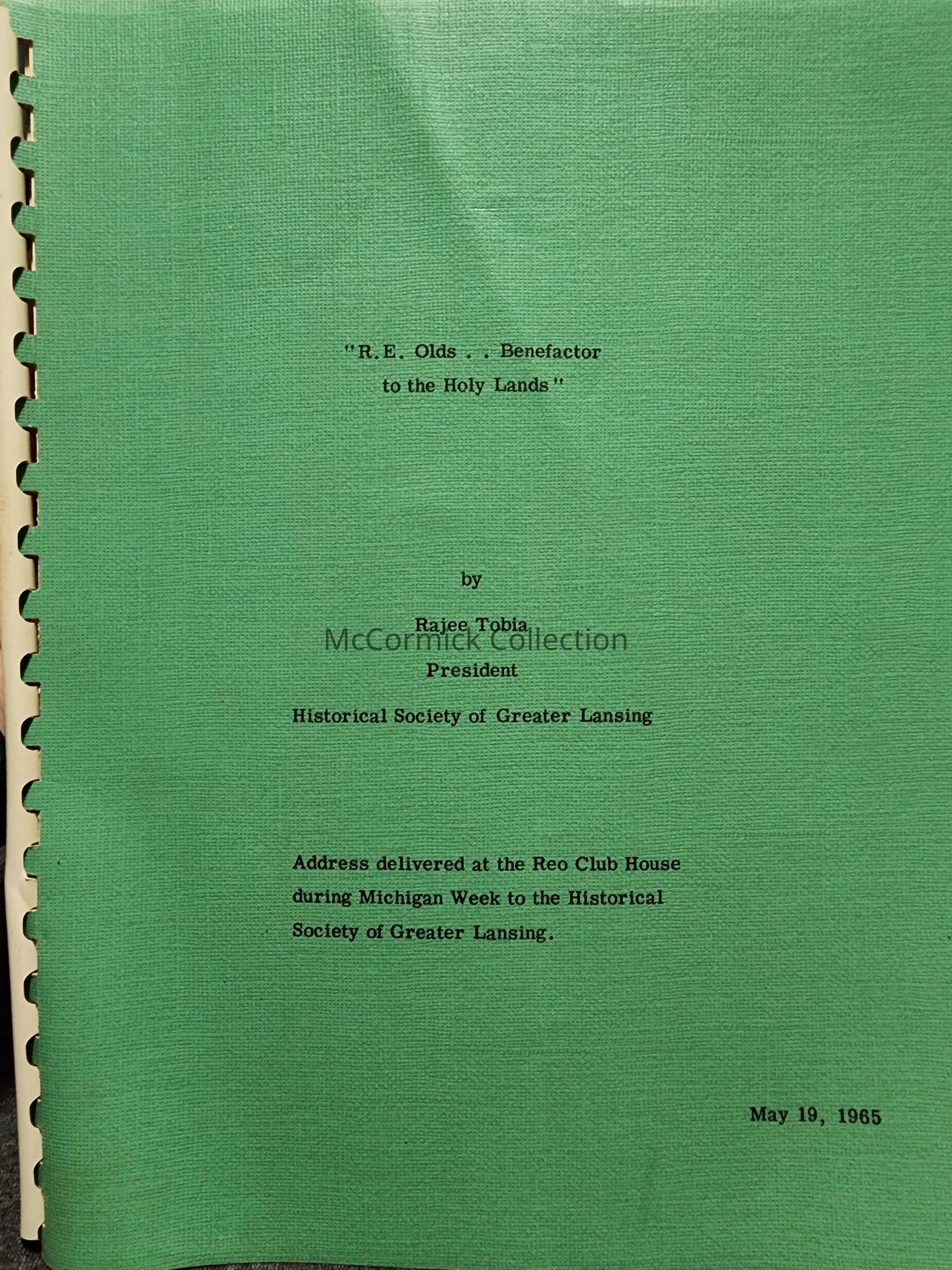 By Rajee Tobia. Historical Society of Greater Lansing publication. Signed by Tobia to Ruby Jennings.