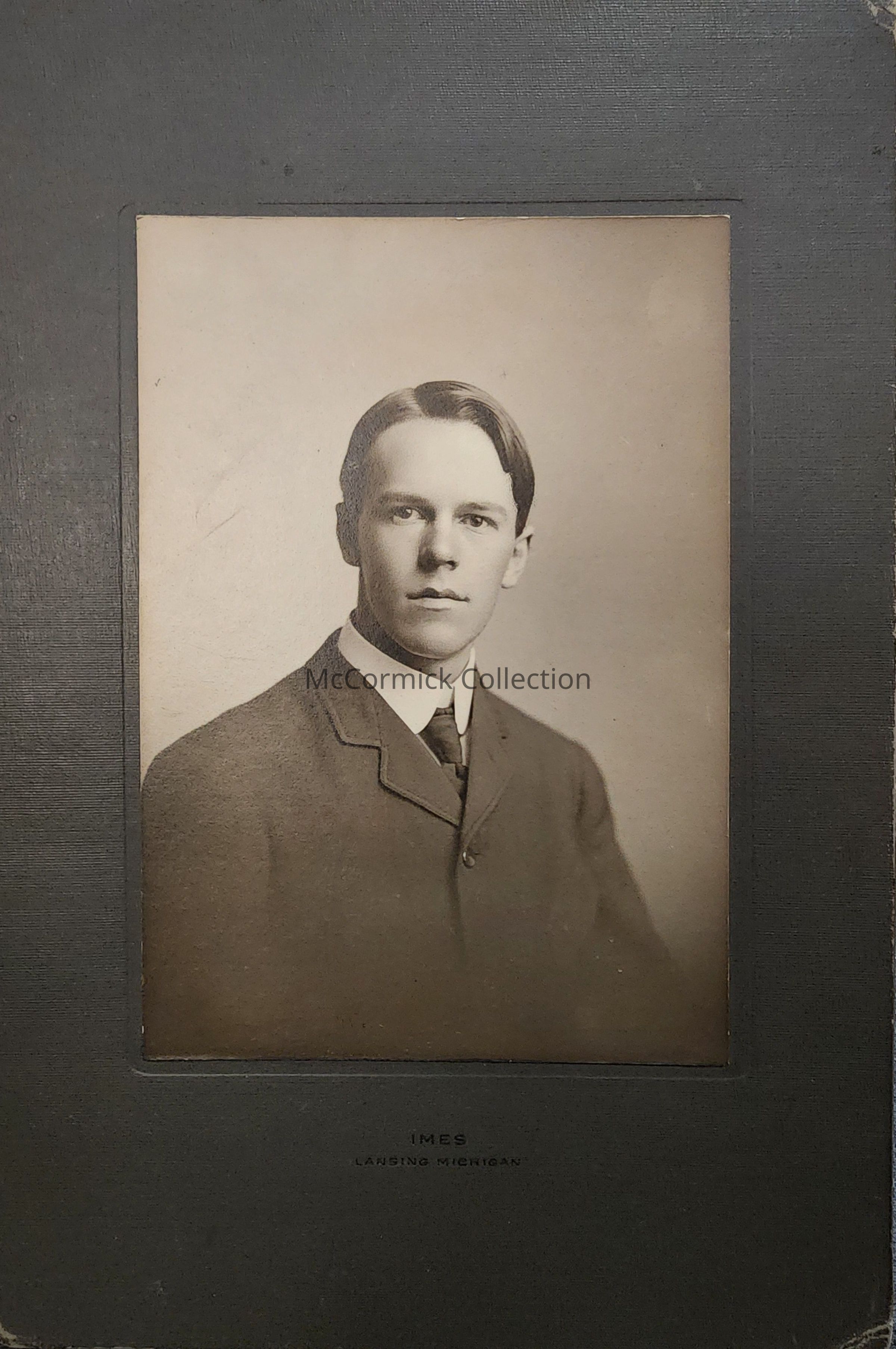 Card mounted photograph of Ray Chase by Lansing photographer Imes. Two copies. From the Chase Collection.