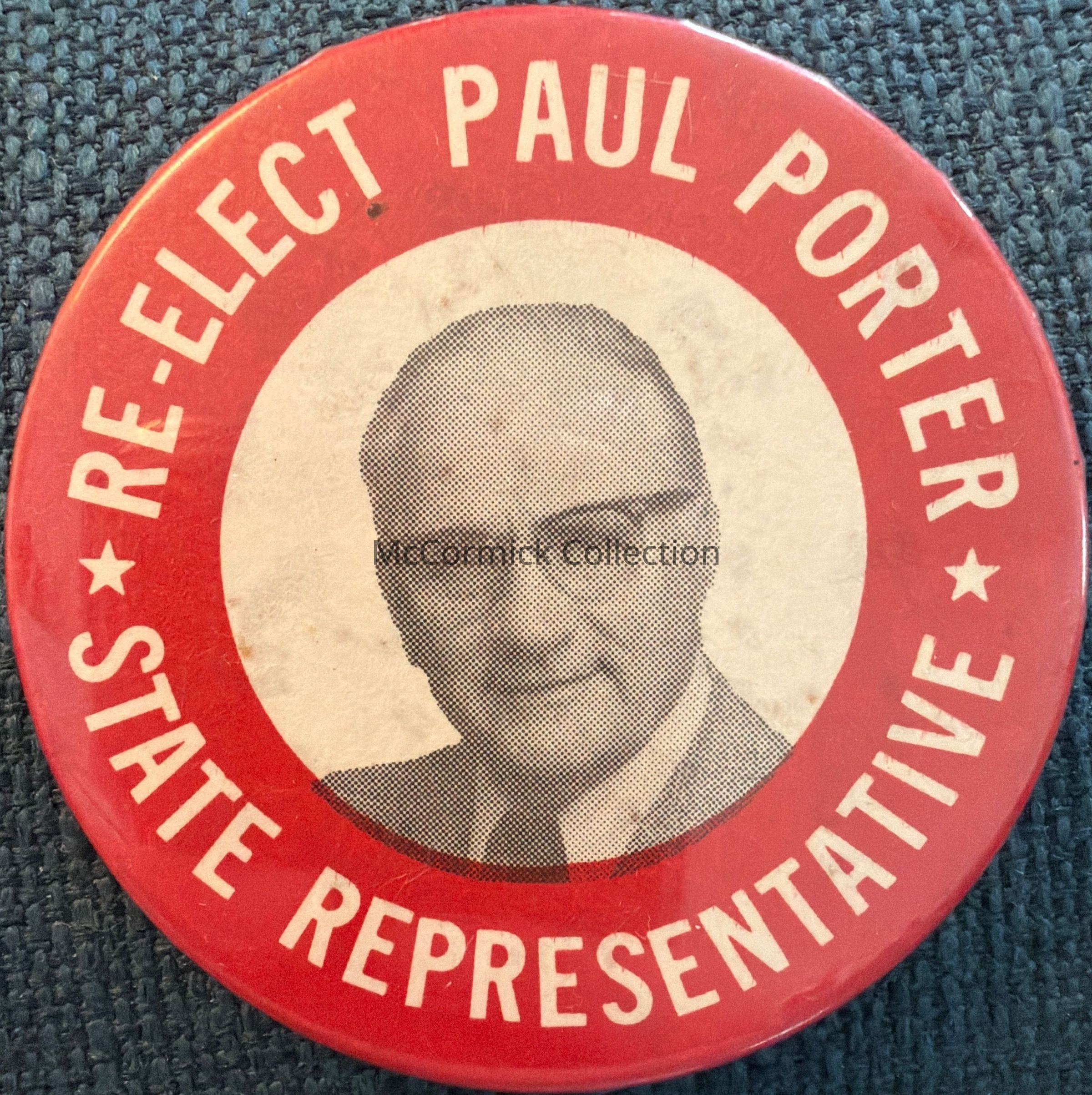 A 2.25” red and white political picture button for Paul Porter for State Representative.