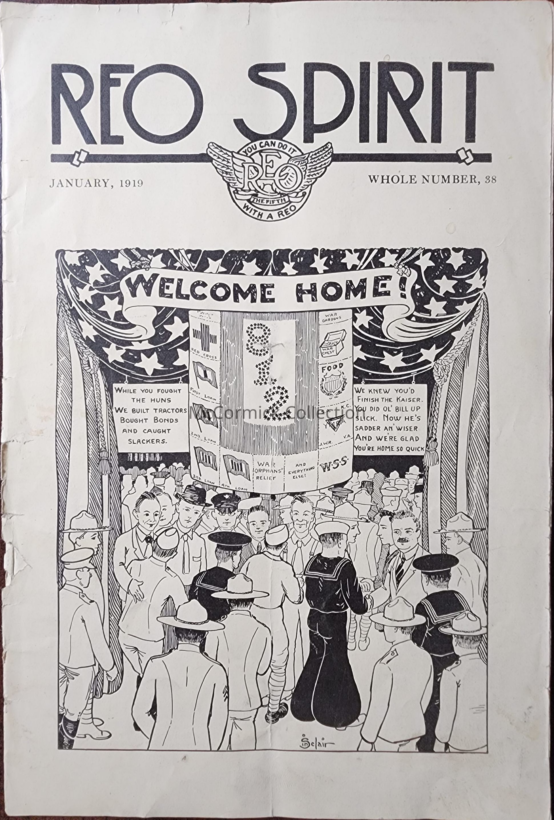 The January 1919, whole number 38, REO Spirit company newsletter. From Reed collection of 11 newsletters purchased, Oct. 2023.
