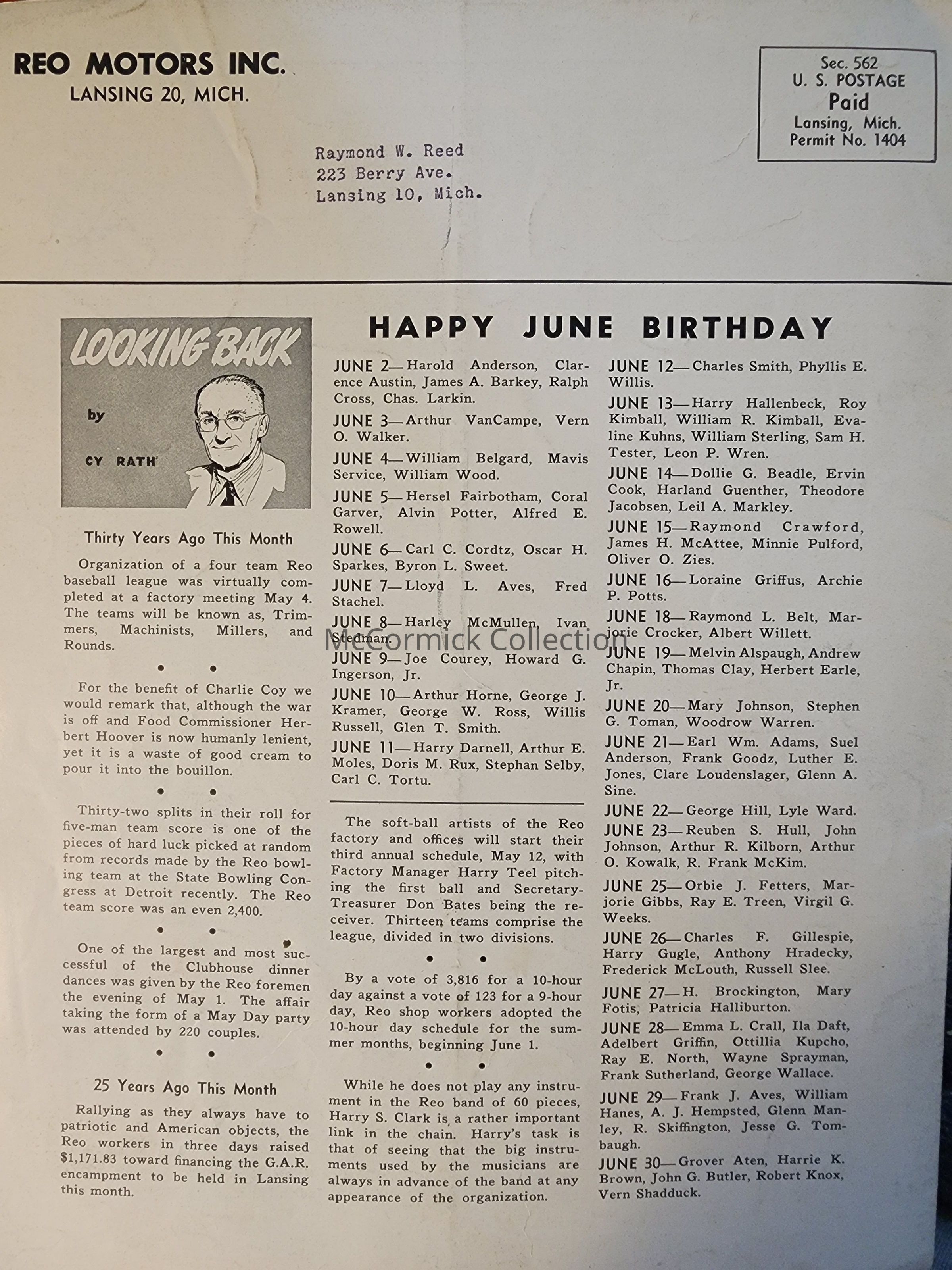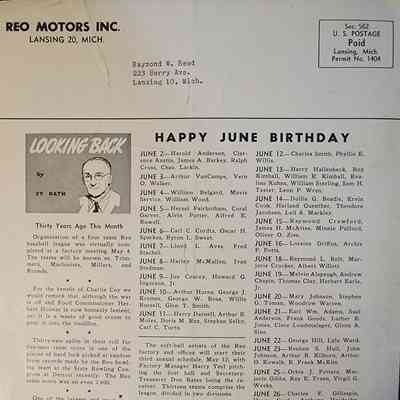 Reo employee newsletter. Addressed to Raymond Reed, my great grandfather.
