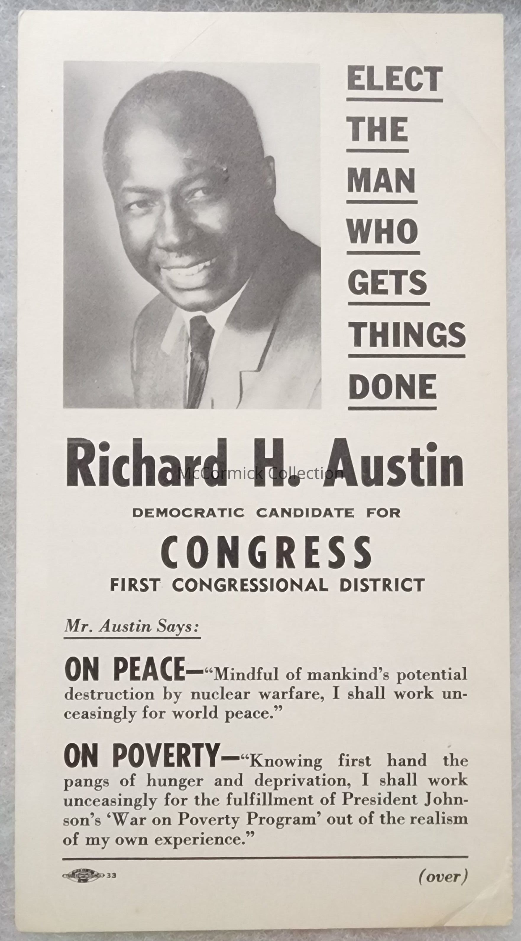 Circa 1960s Pamphlet for Richard H. Austin for Congress. Lost in the Democratic primary to John Conyers.