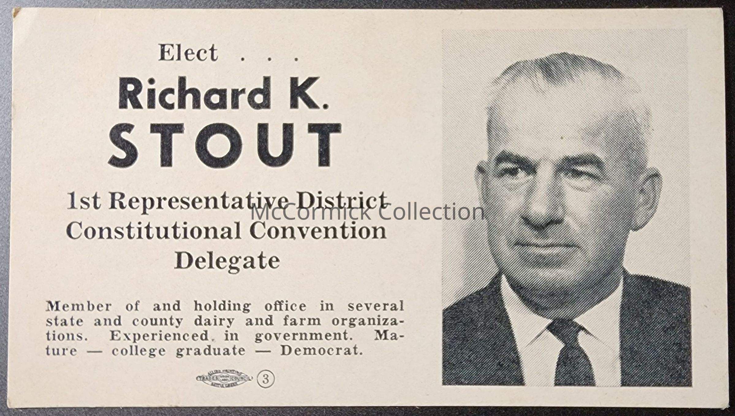 Richard K. Stout, Con Con Delegate Election Palm Card
