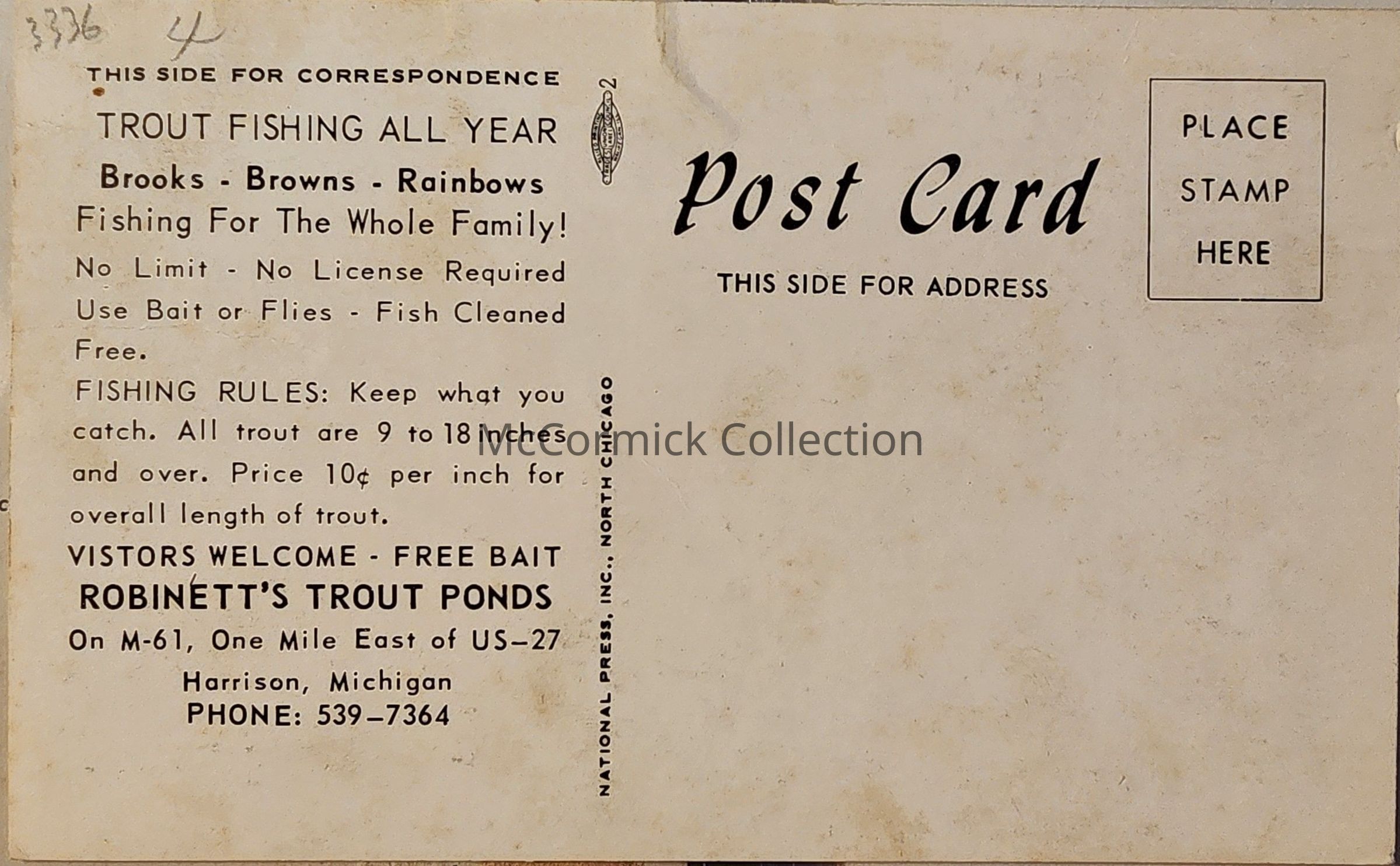 Robinett's Trout Ponds, Harrison, Michigan, Postcard