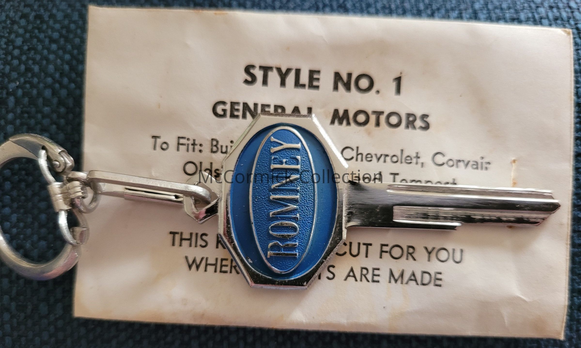 A metal and enamel Romney universal key Style No. 1 General Motors. Circa 1960s.
