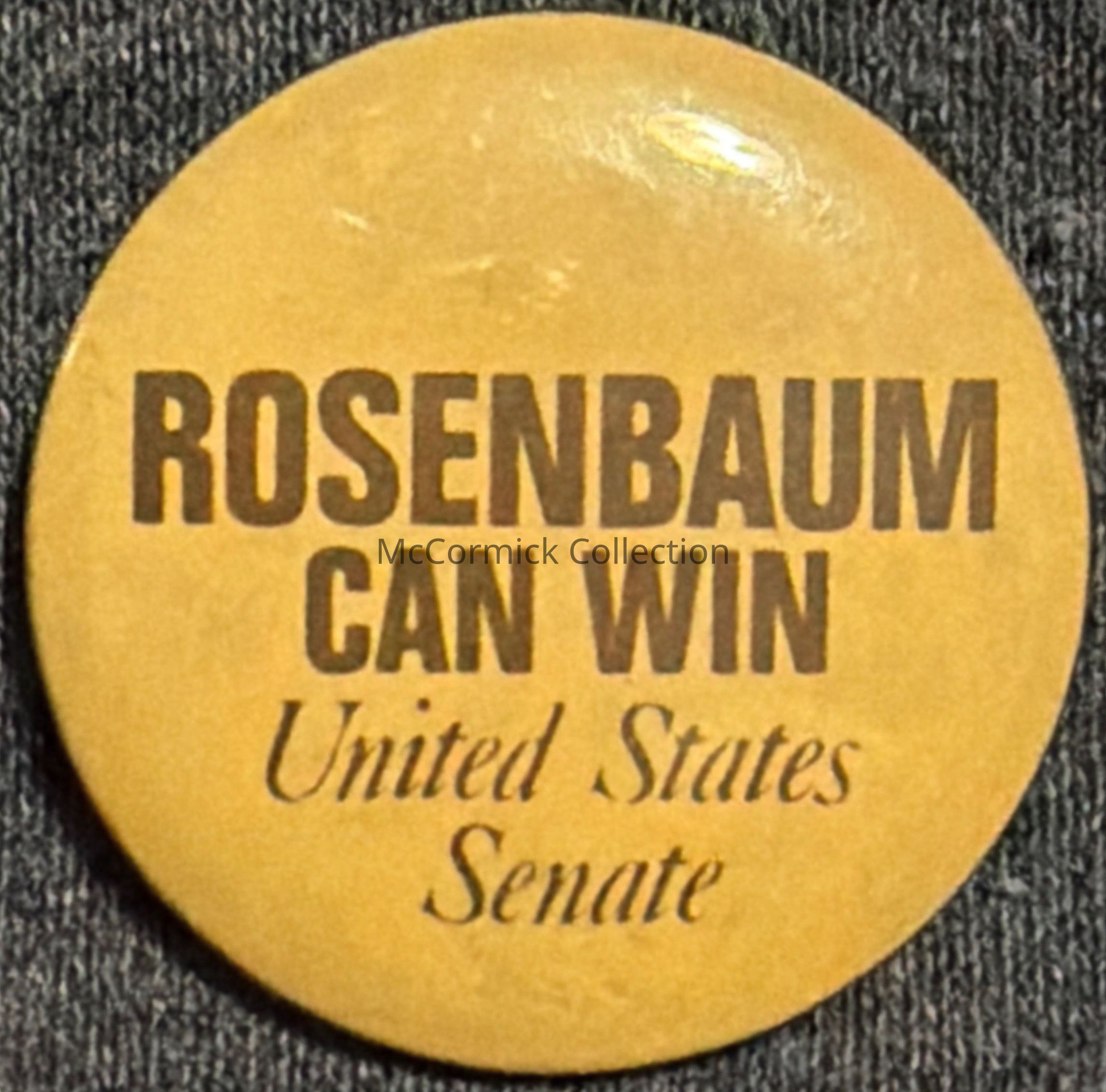 A 1.25” yellow and brown political button for Paul Rosenbaum for United States Senate. From the Kingdon Collection.