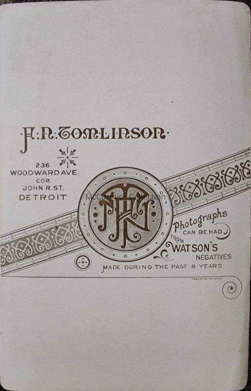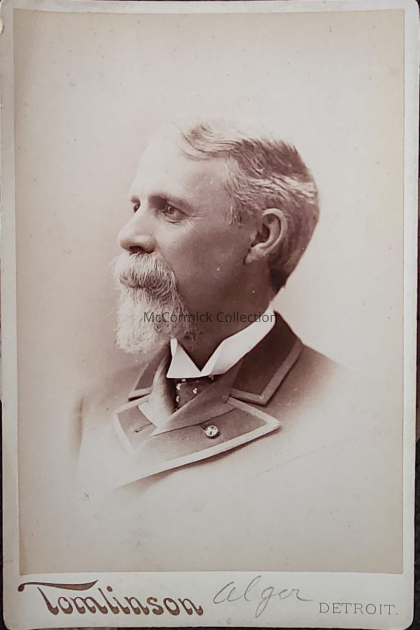Cabinet card photograph of Michigan Governor Russell Alger by Detroit photographer Tomlinson.
