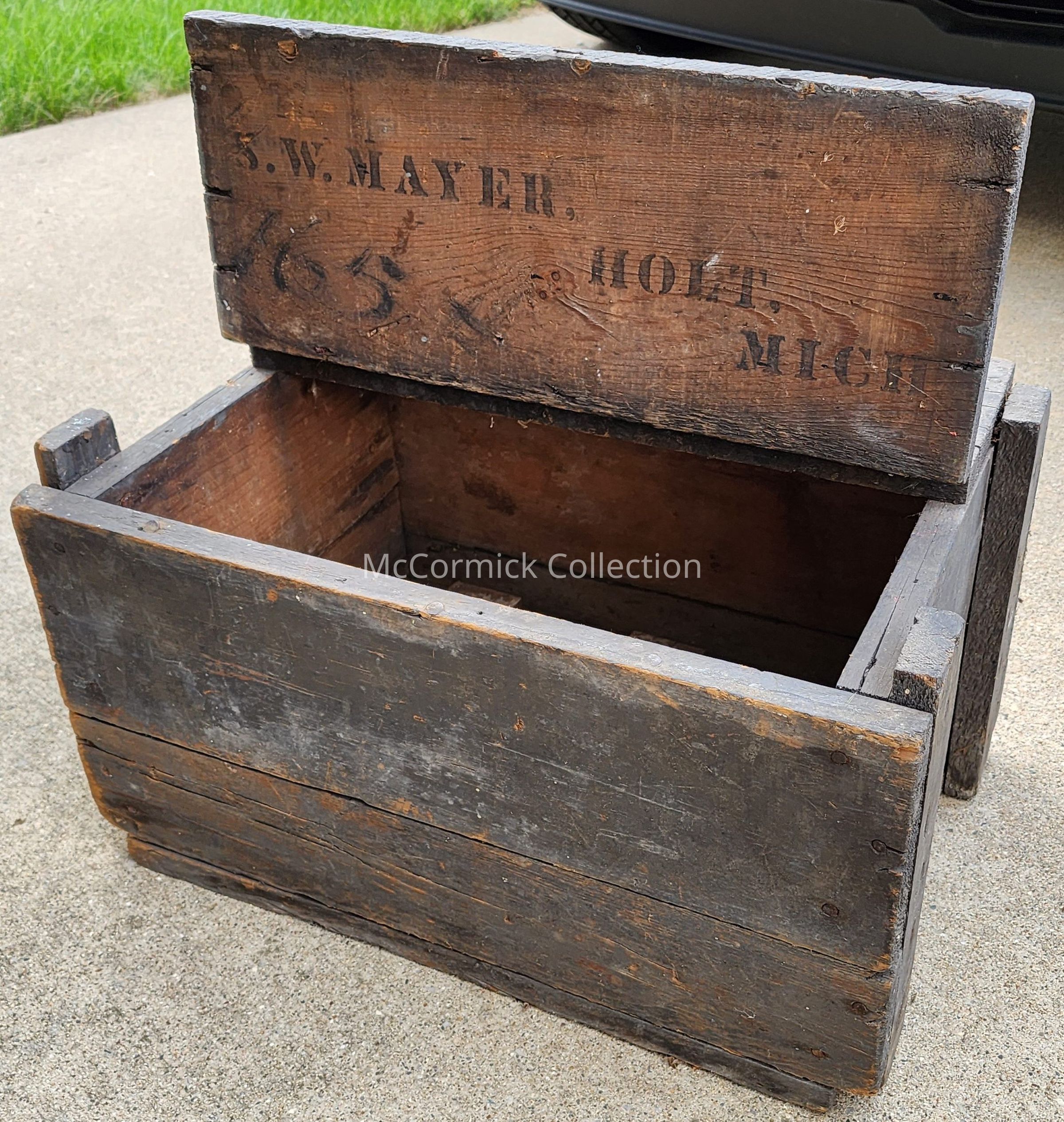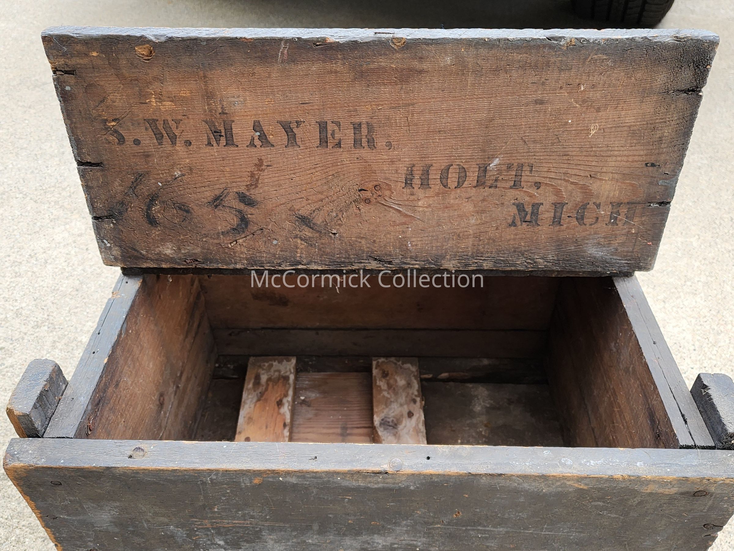 Crate from the Samuel W. Mayer general store in Holt, Michigan, circa 1900. Mayer was Holt Postmaster, state representative, and all around involved citizen.