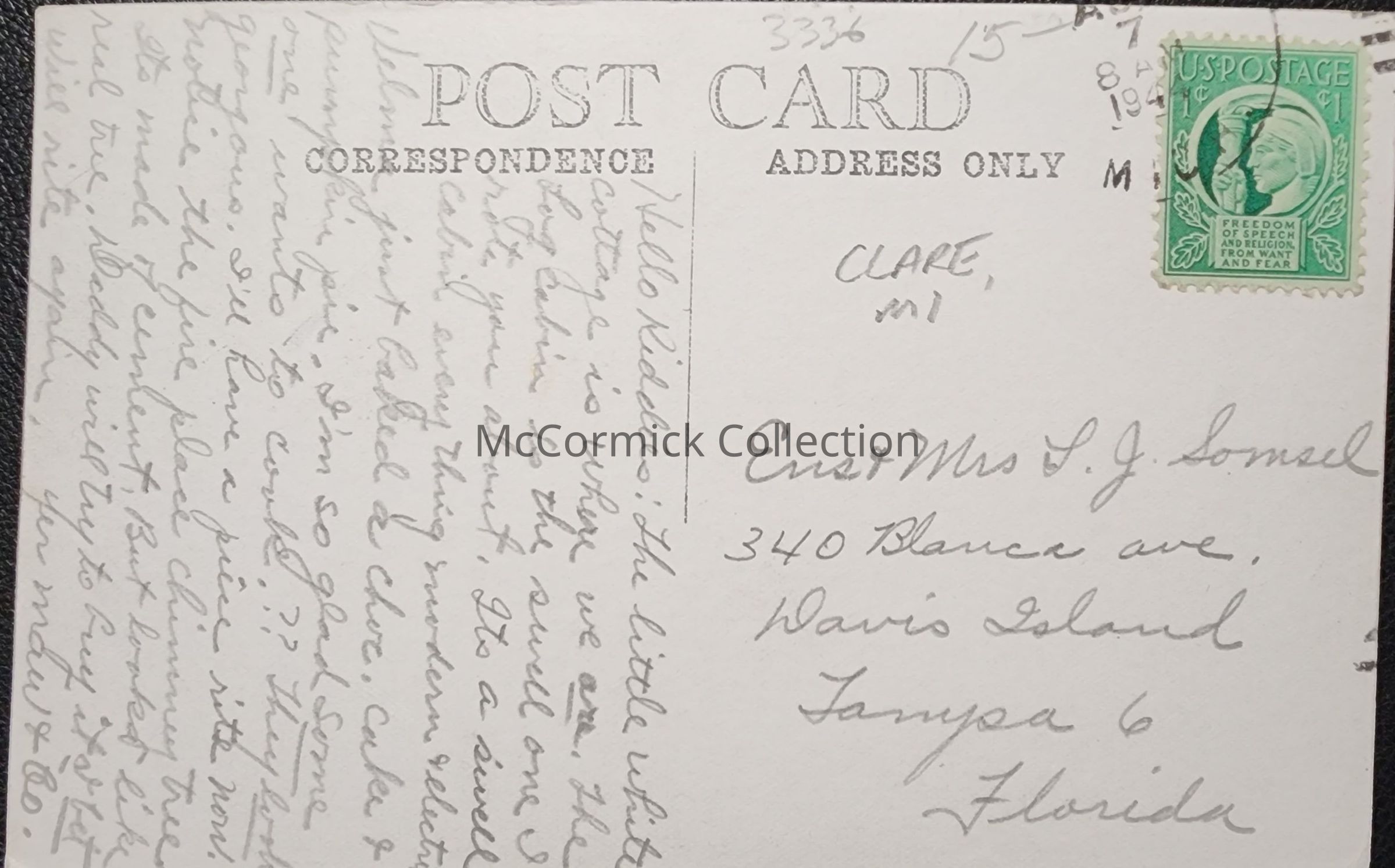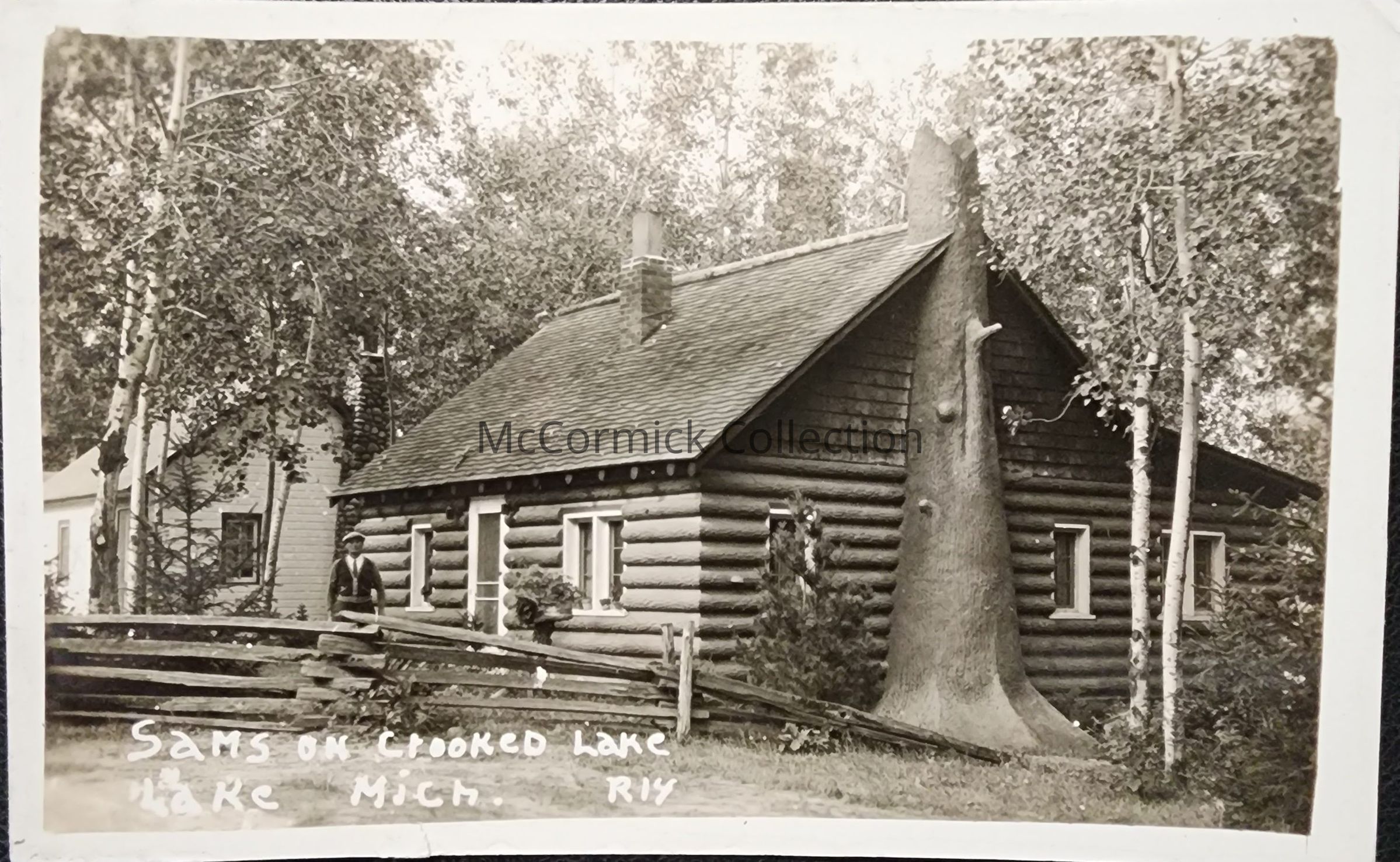 Real photo postcard of Sam's on Crooked Lake in Lake, Michigan. Postally used, 1944 postmark. Addressed to Tampa, Florida.