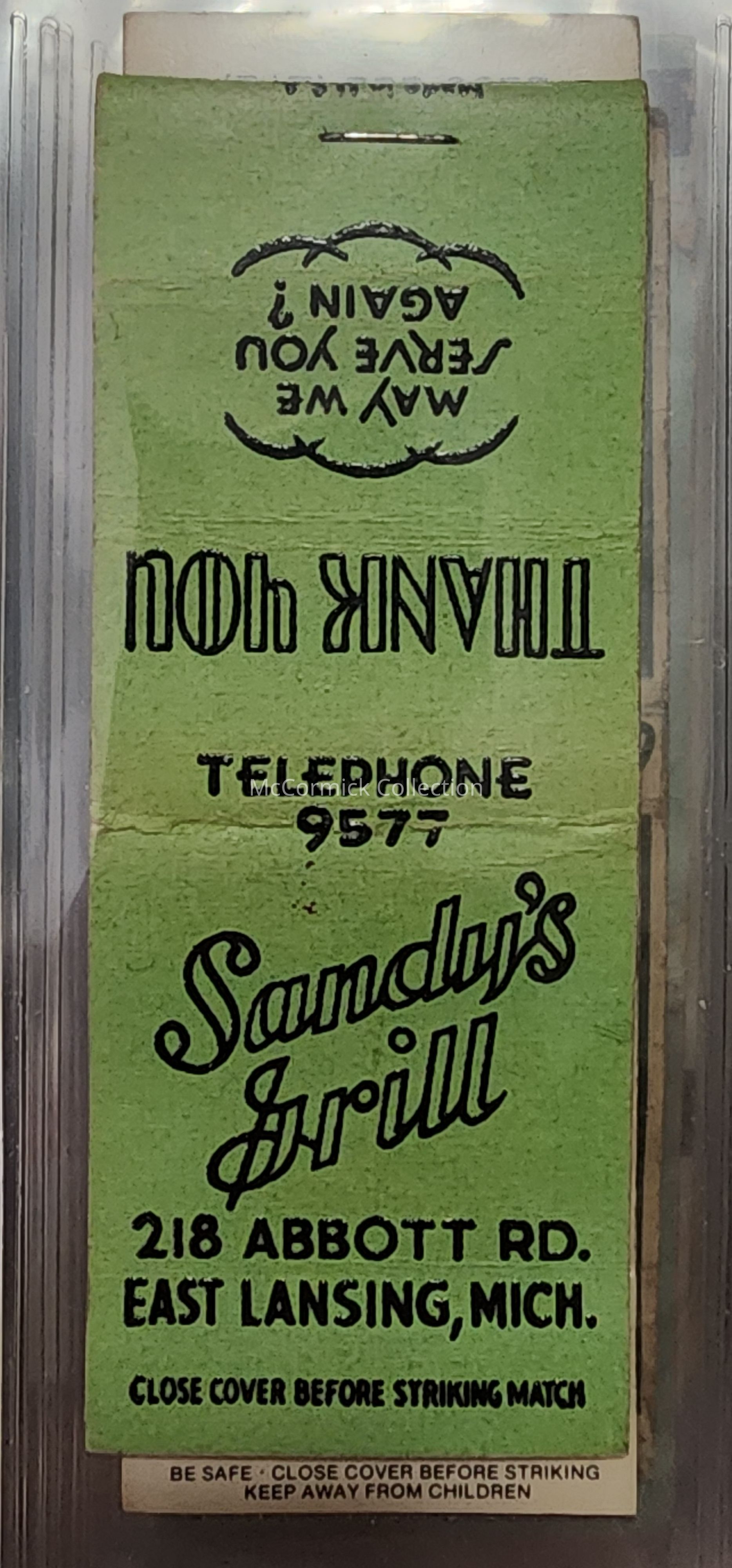 Sandy's Grill, East Lansing, Mich., Matchbook