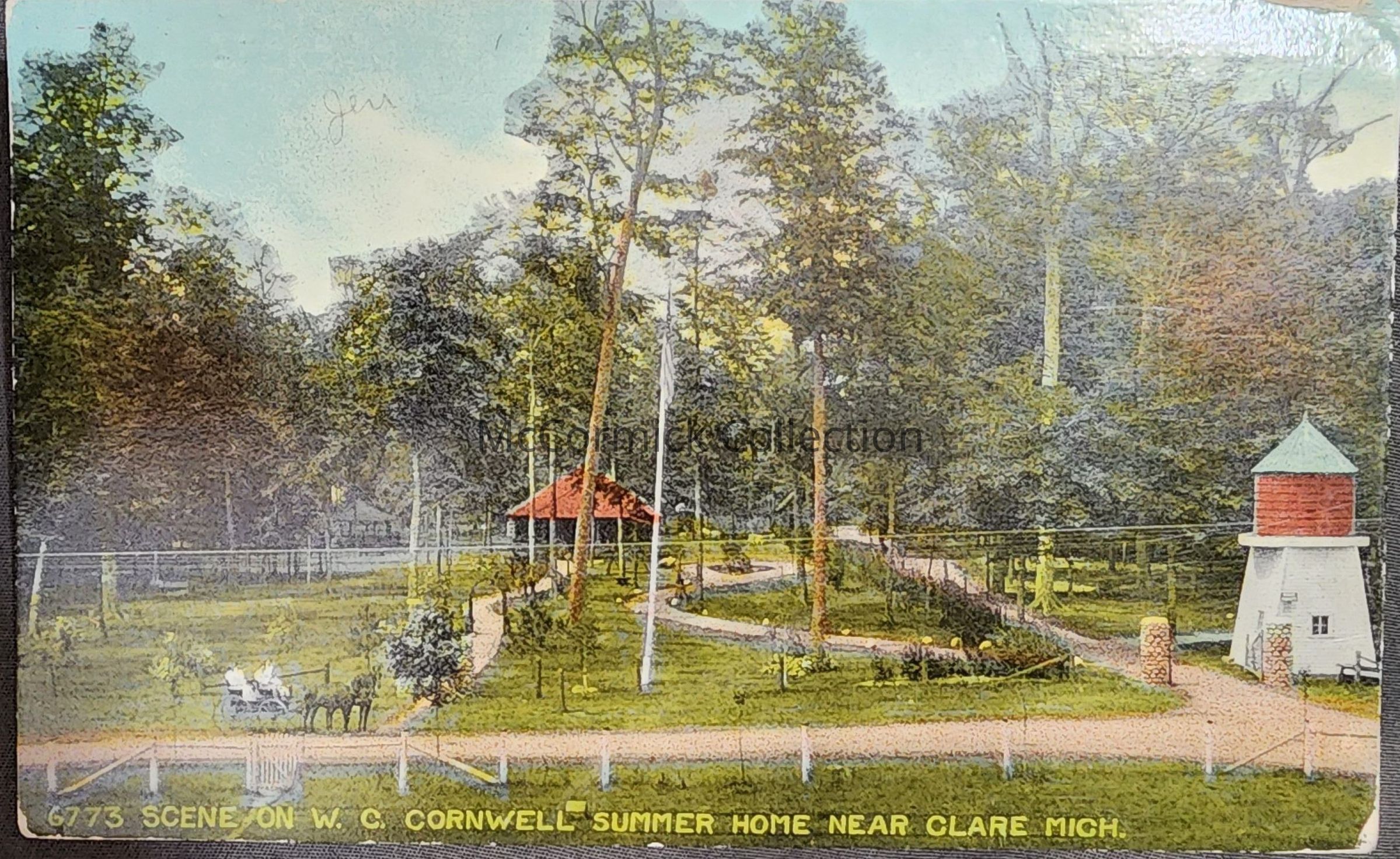 Scene on W.C. Cornwell Summer Home Near Clare, Mich. Postcard