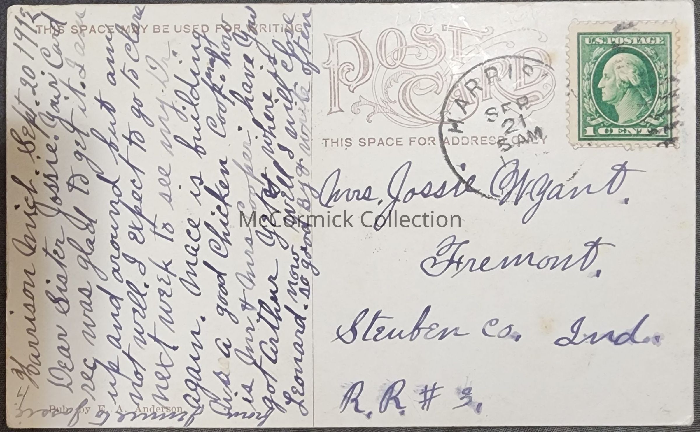 Postcard of the W.C. Cornwell Ranch between Clare and Harrison, Michigan. Postally used, postmarked Harrison. Dated 1912.