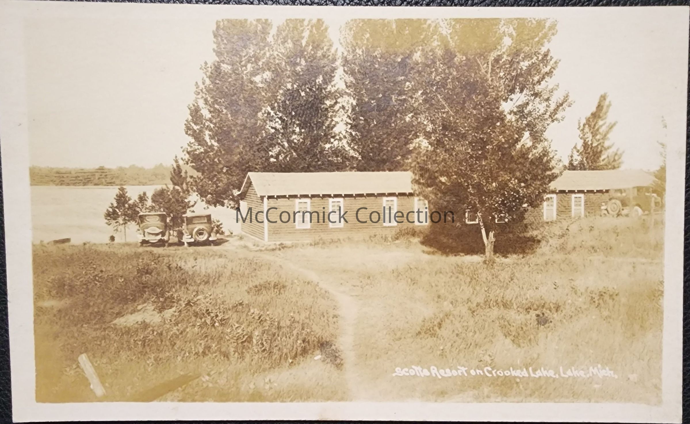 Real photo postcard of Scott's Resort on Crooked Lake in Lake, Michigan. Postally unused.