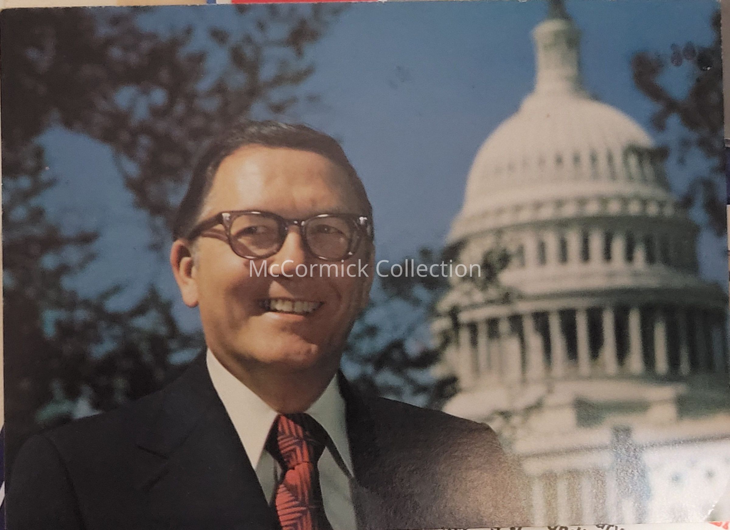 A political postcard for Robert P. Griffin for U.S. Senator featuring a photo of Griffin with the U.S. Capitol in the background. Circa 1960s.