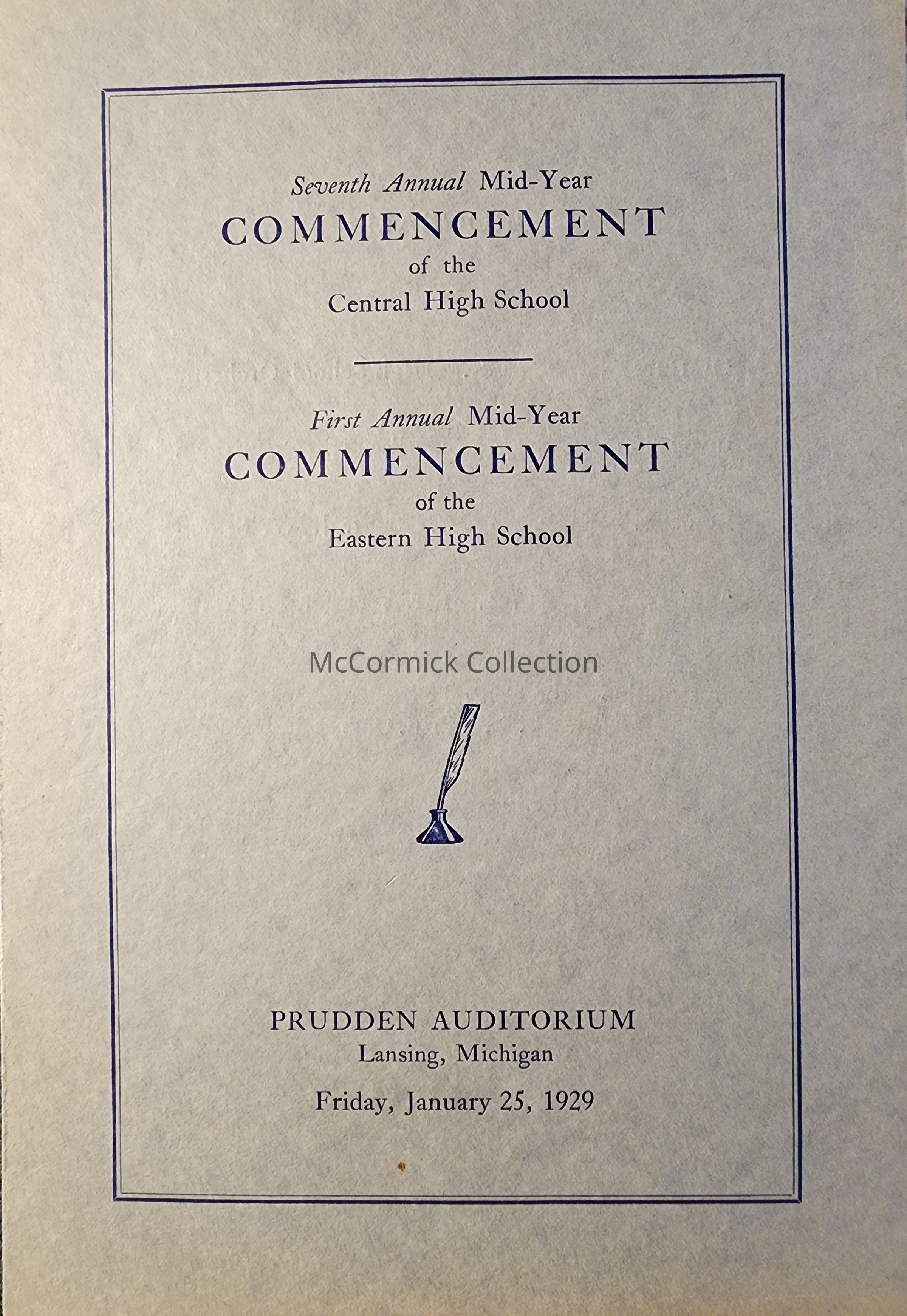 Seventh Annual Mid-Year Commencement of the Central High School, First Annual Mid-Year Commencement of the Eastern High School, 1929, Program