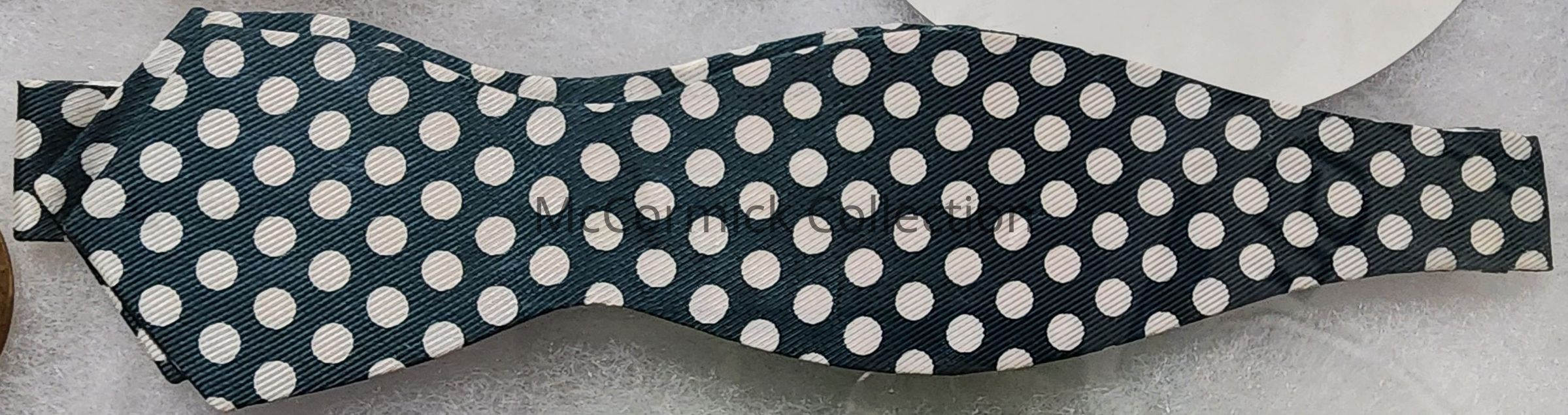 A green and white bowtie, given as a gift of Governor G. Mennen Williams. Made expressly for Williams.