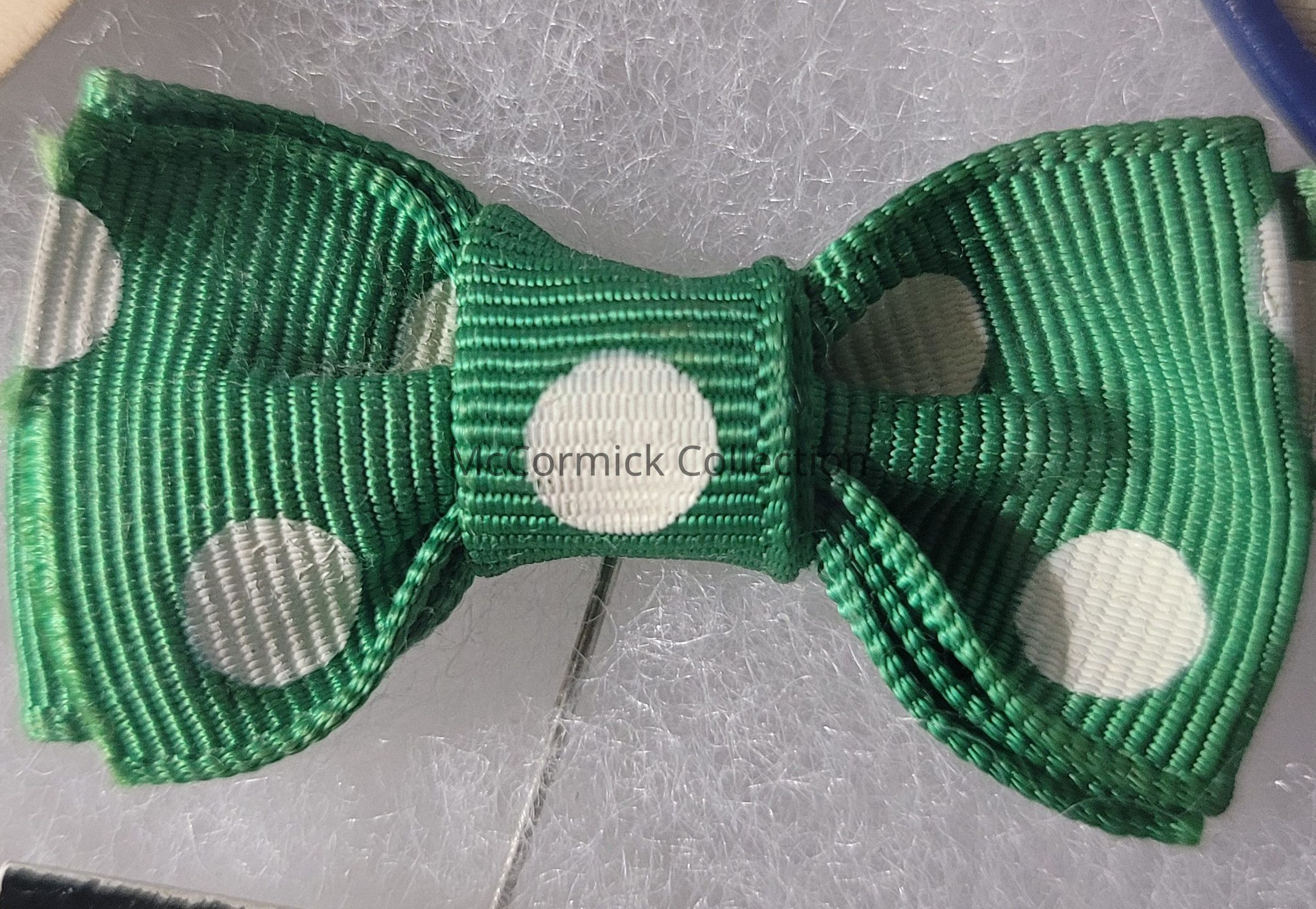 A 1.75" cloth green and white bowtie political pin for G. Mennen Williams.