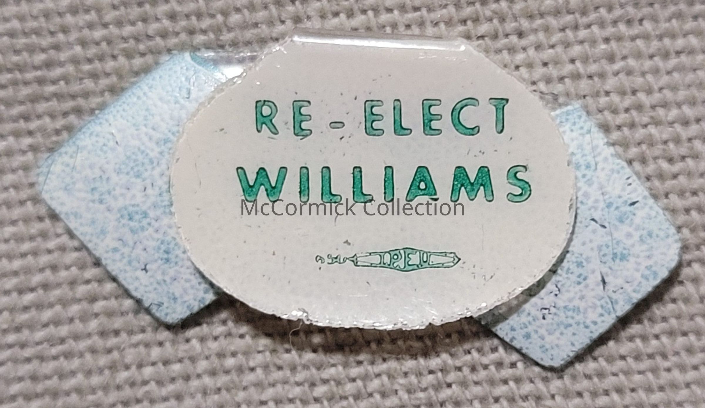 Tiny green and white bowtie sticker for G. Mennen Williams' gubernatorial reelection campaigns of the 1950s.